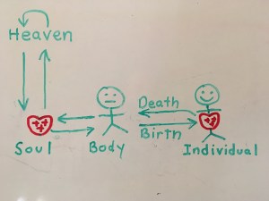 The soul is an individualized ethereal positive energy source from God that enters our borrowed bodies at conception or shortly after; and it leaves our lifeless bodies at death to return to Heaven (see figure 1-3).
