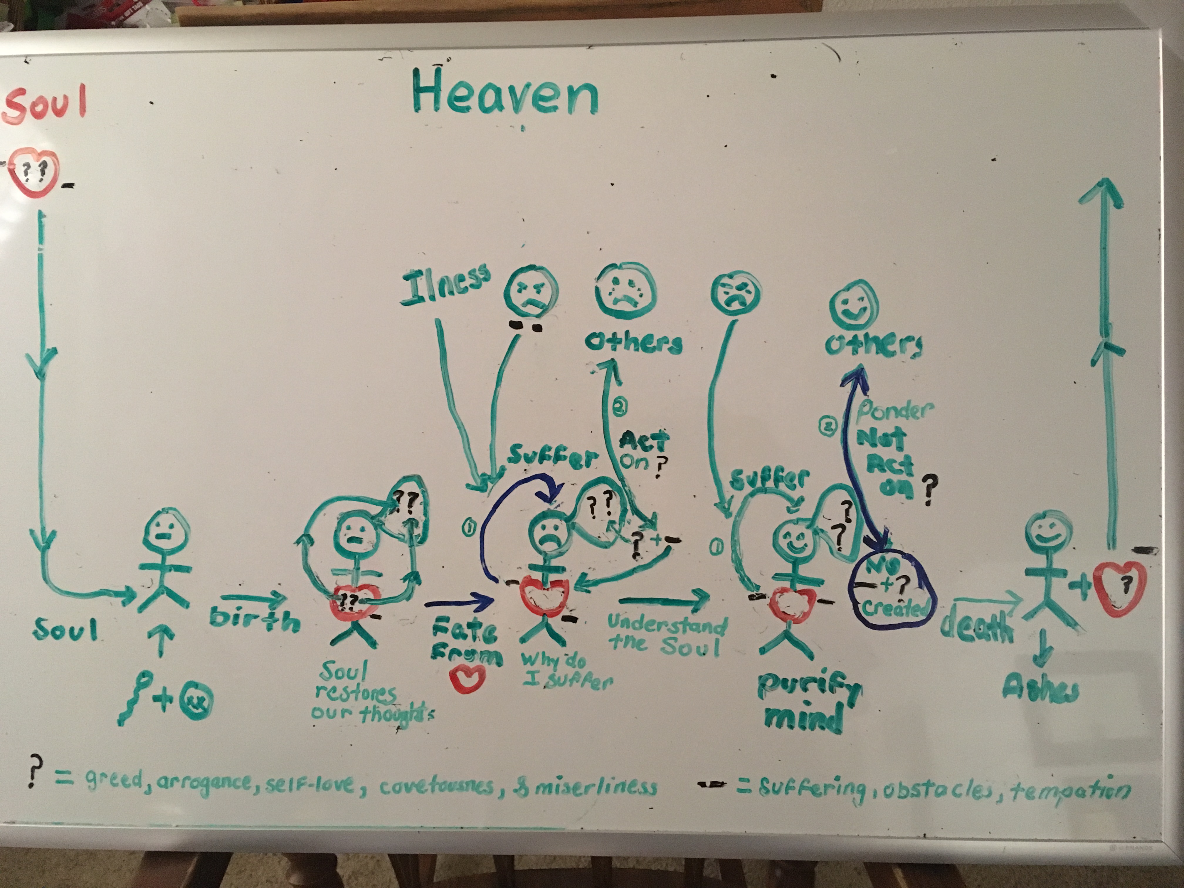 My recent blogs have been about the soul; and how by understanding the soul, we can purify our minds and have a joyous life. To simplify my explanations, I have attached the image below. A picture may be worth a thousand words.