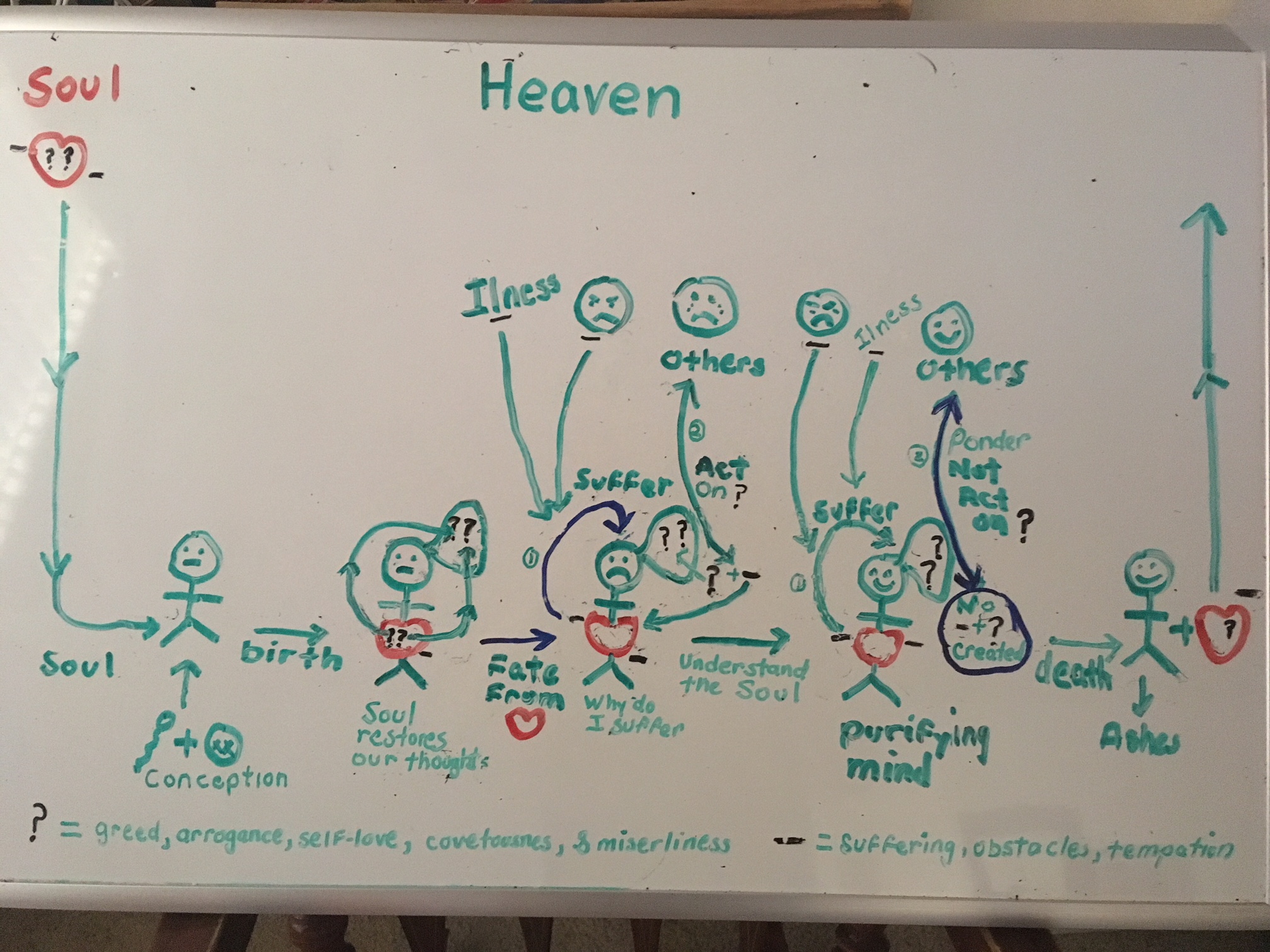 What is the soul? We all know that our human bodies die and decay, but our souls exist forever. We could debate all day if our souls go to an afterlife for eternity, or return back to earth to be reincarnated. It is our souls that carry our essence, or who we are. The soul carries our disposition of thoughts, like greed, arrogance, miserliness, covetousness, and self-love from one lifetime to another. It also carries our fate, which were created by acting upon these same evil thoughts. The soul collects our merits and demerits, and eventually releases them back to us as joy or sorrow in the afterlife, or in our next life if we believe in reincarnation. You can say that the soul is like Santa Claus; it knows when we are good or bad; and metes out our appropriate rewards.