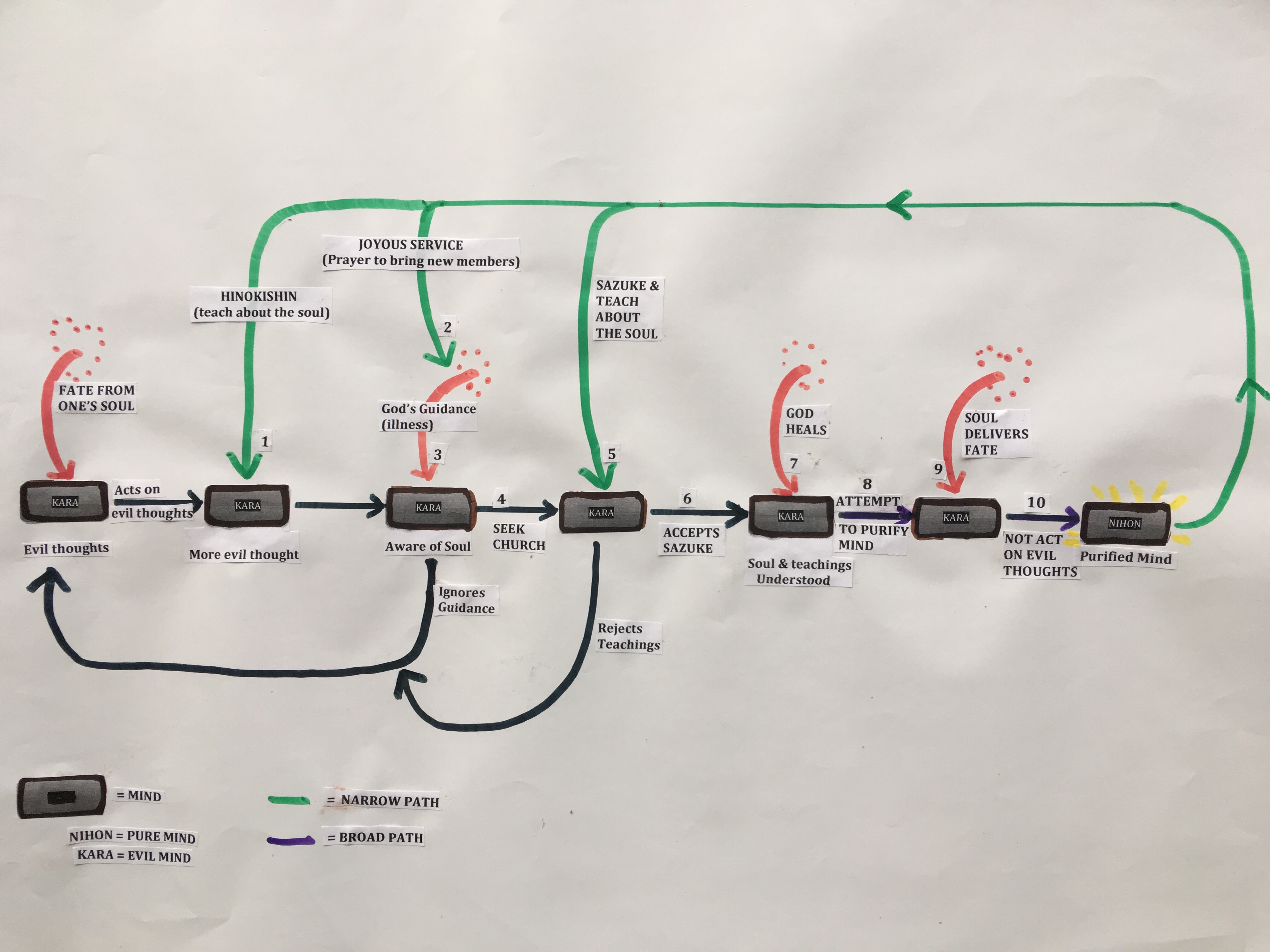 The following chart represents a summary of the Ofudesaki, concerning the broad path and narrow path.