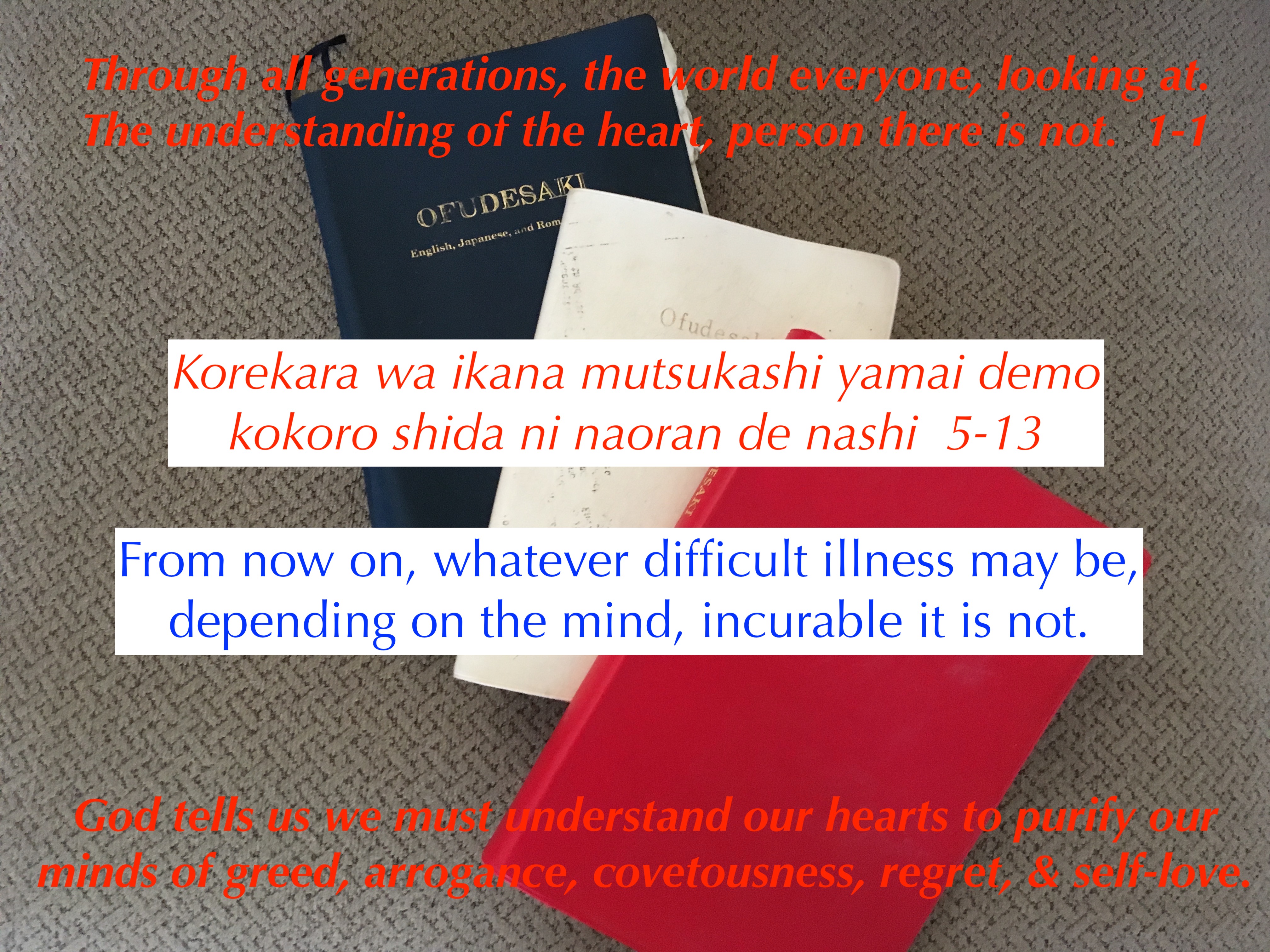 God is telling us that if one purifies the mind of evil thoughts, illness one has will become nonexistent. These dusts are greed, arrogance, self-love, regret, and covetousness. These are thought patterns, God tells us we must remove from our minds. God tells us by understanding the heart, we can do this.