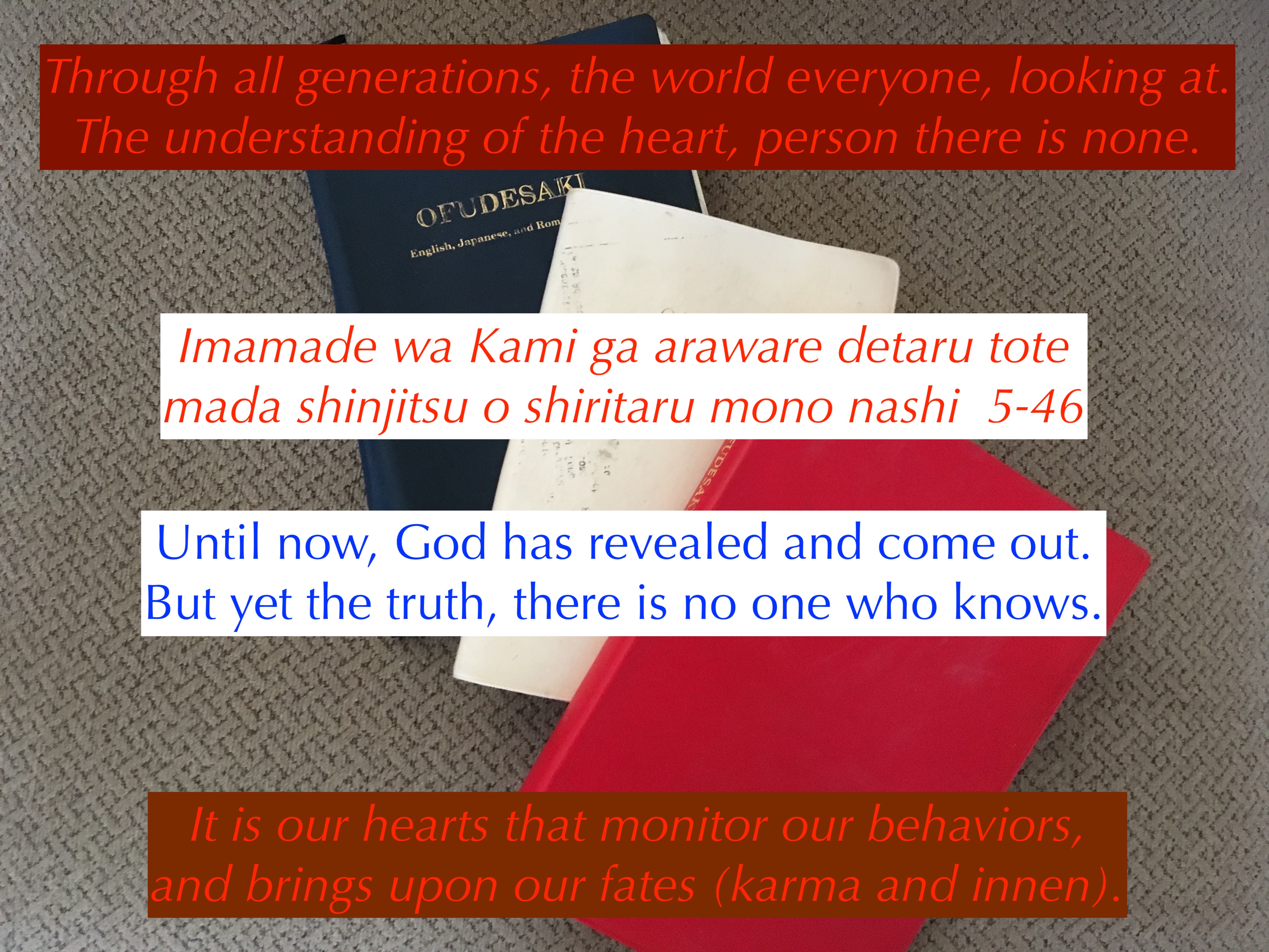 God was revealed to Oyasama’s residence to save everyone in the world. But the truth of the heart no one understands.