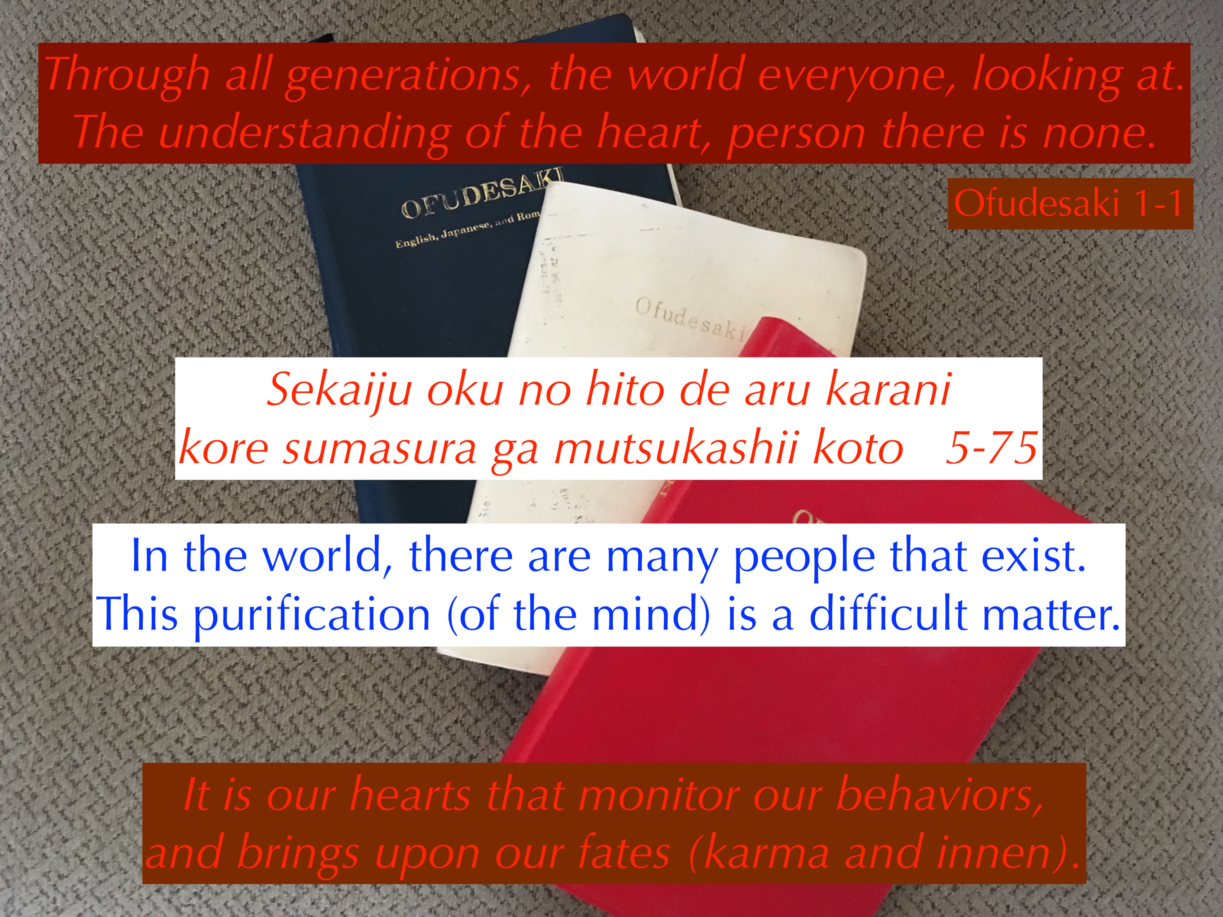 God is asking us how do we purify the minds of the world, which now is over 7 billion. This is a difficult task that God will accomplish. The instructions are all in the Ofudesak!