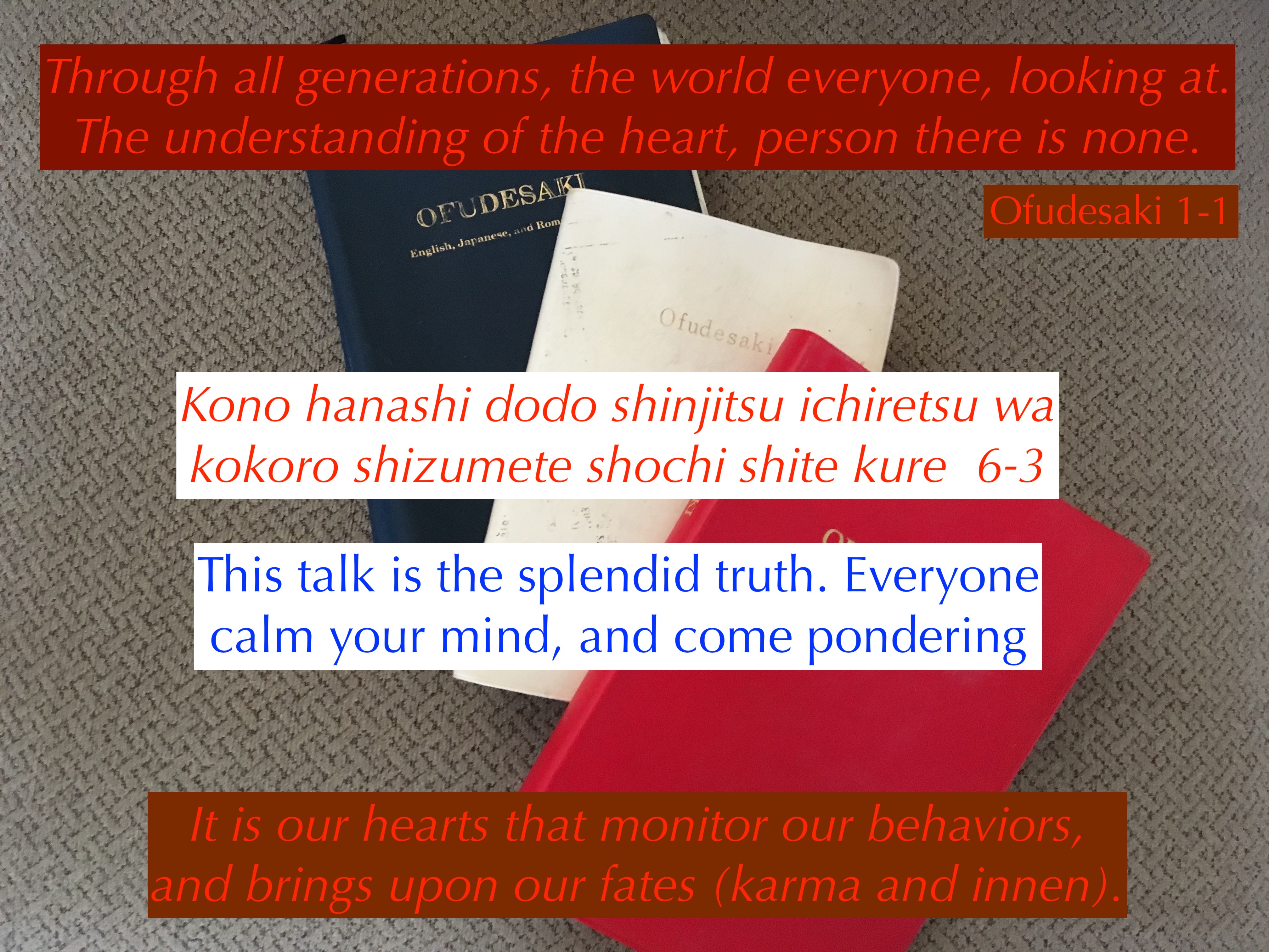 Everything written in the Ofudesaki is true. These are the words of God. When one calms the mind, one can understand reasoning.