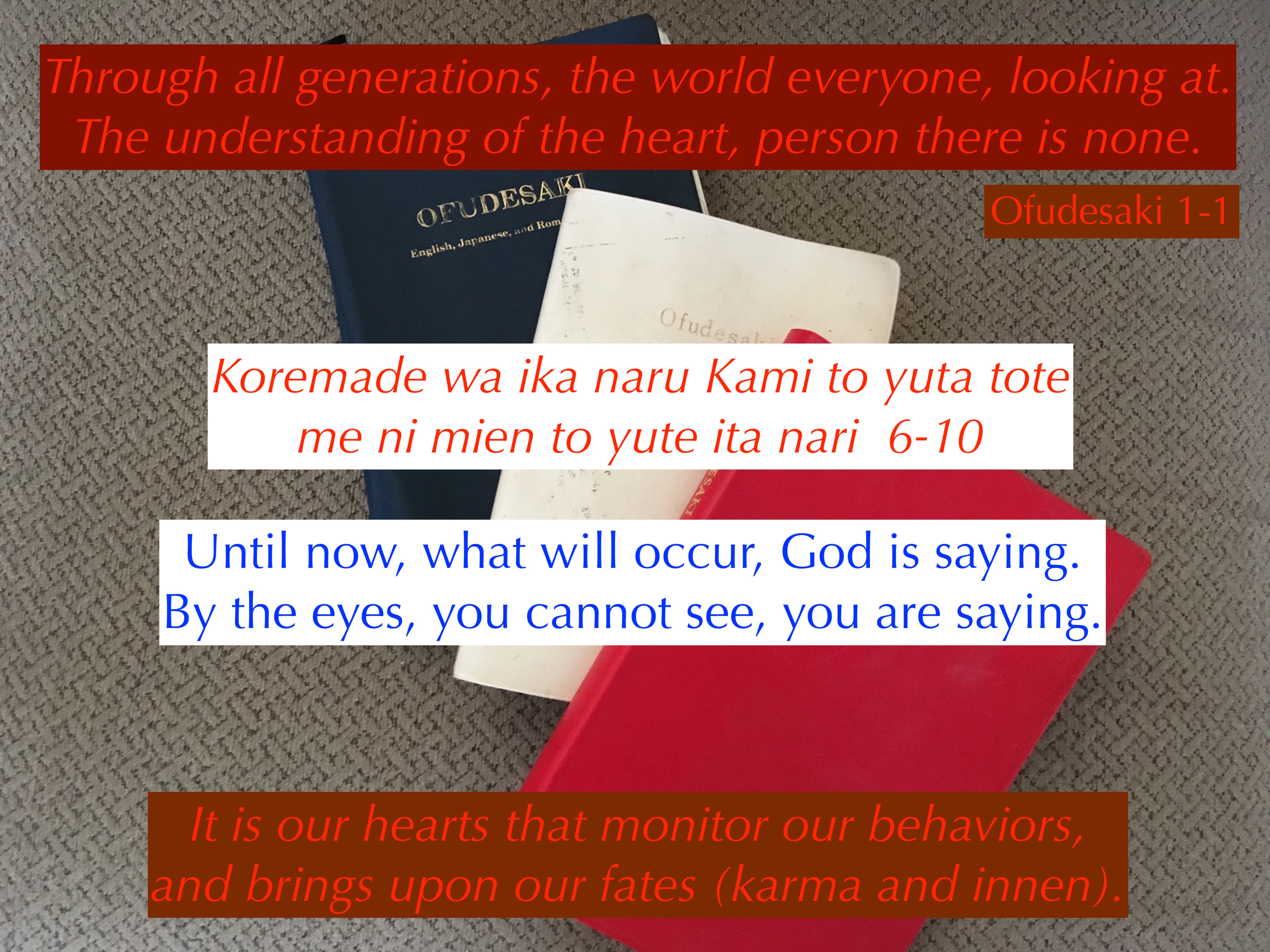 God is telling the early followers the marvelous salvation in the world that will appear. Like everyone of us, we would like this miraculous salvation seen by our own eyes. But what the early followers did not know was that God was preparing them for these occurrences to come true. These preparations were the understanding of the heart to purify their minds, the spreading of the heart and teaching to others, and finally the performance of the Joyous Service. This is the trifecta that will bring upon God’s blessings.