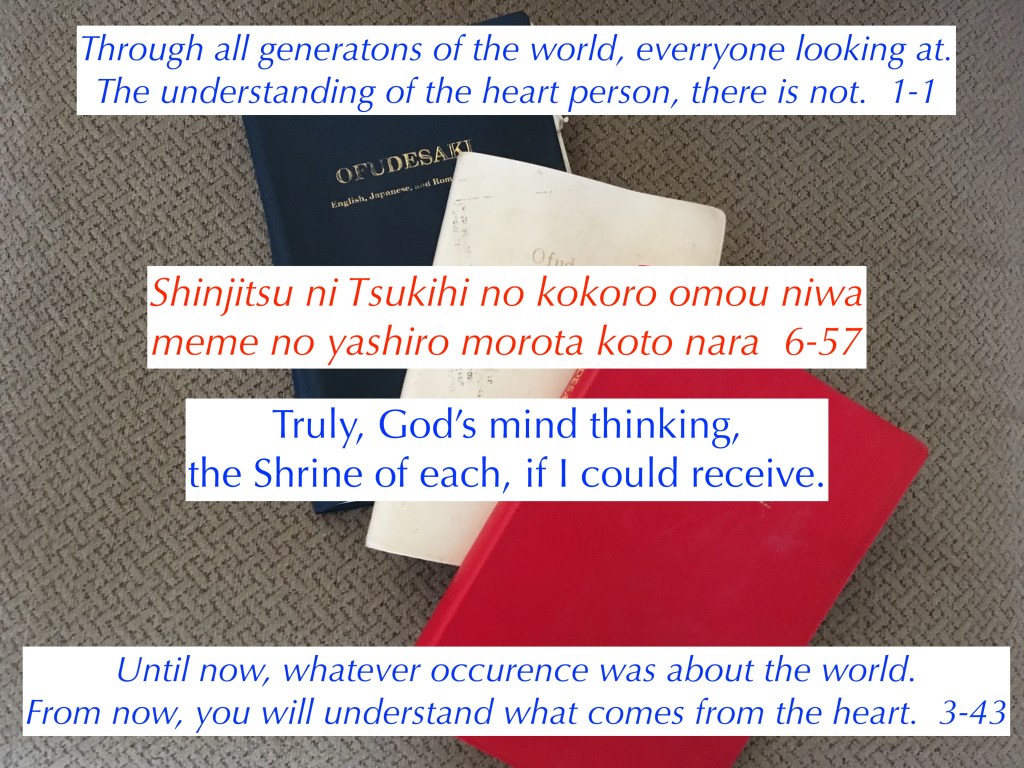 Interpretation:God asked the Nakayama family to accept Miki as the Shrine of God. God does not force people to act. We have free will to use our minds as we wish. This is not true for our bodies, as they are loaned to us from God.