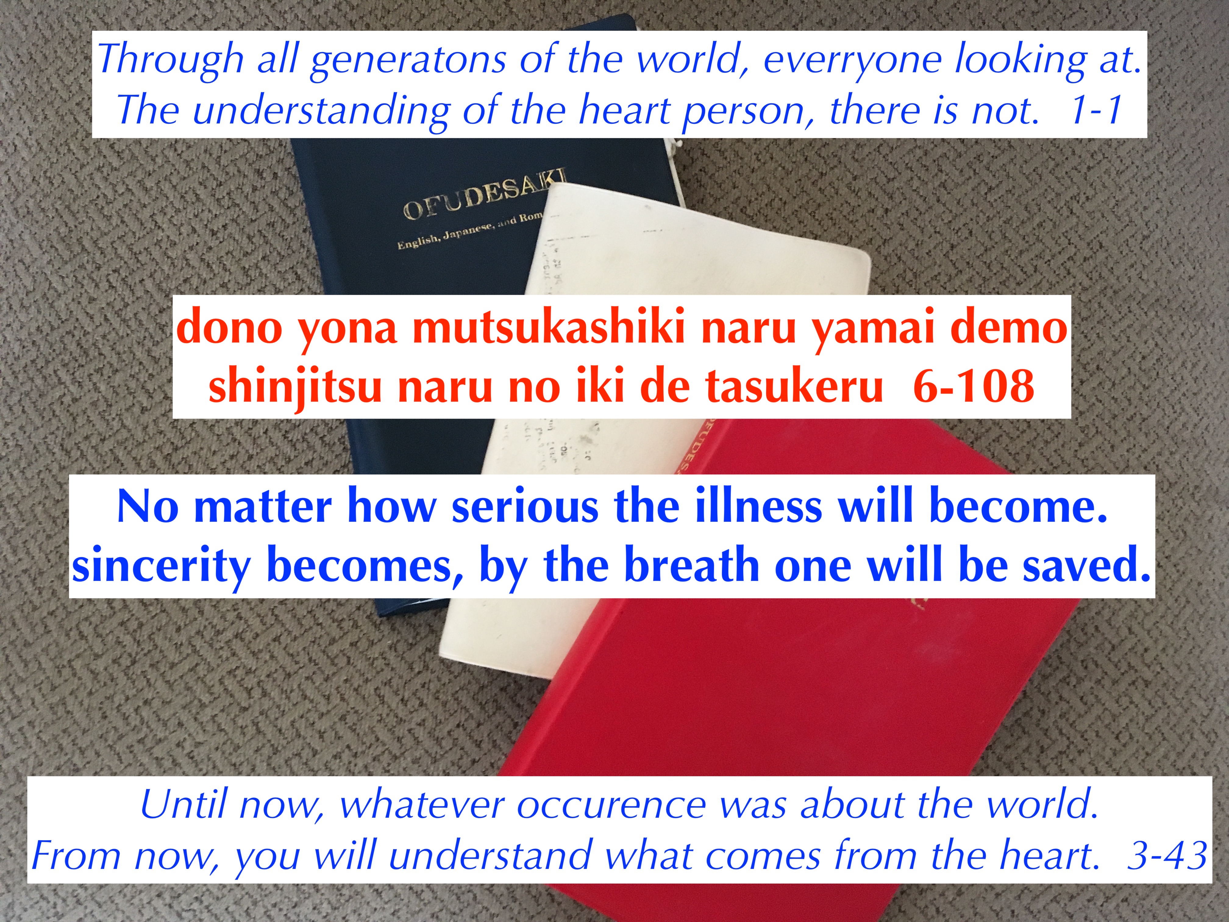People often debate if it is the sincerity to the prayer, or the sincerity of the one who is receiving the sazuke that matters. I believe in this situation, it is the mind of the recipient that is most important in their healing. This is why it is important for us to continue to teach them before we perform the sazuke. When we perform the Joyous Service, it is the mind of the performer that is most important for God to accept our prayer, of helping others understand the teachings. This is important because we ourselves must understand the teachings before we can teach others.