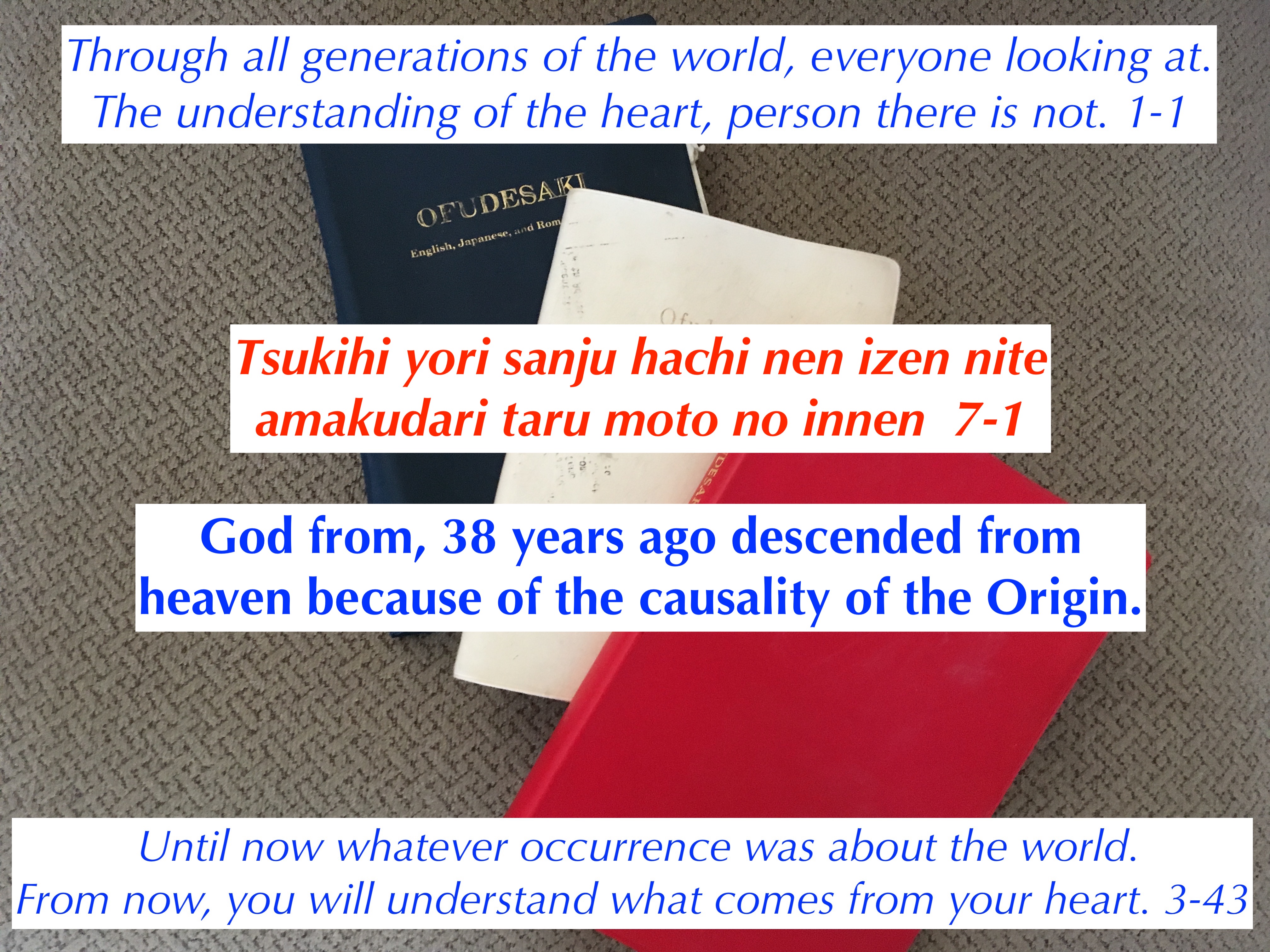 This entry was posted in Scripture From Heaven, The origin of suffering is from the mind and tagged causality, God, heaven's truth church, innen, karma, reincarnation, soul, TENRIKYO. Bookmark the permalink.