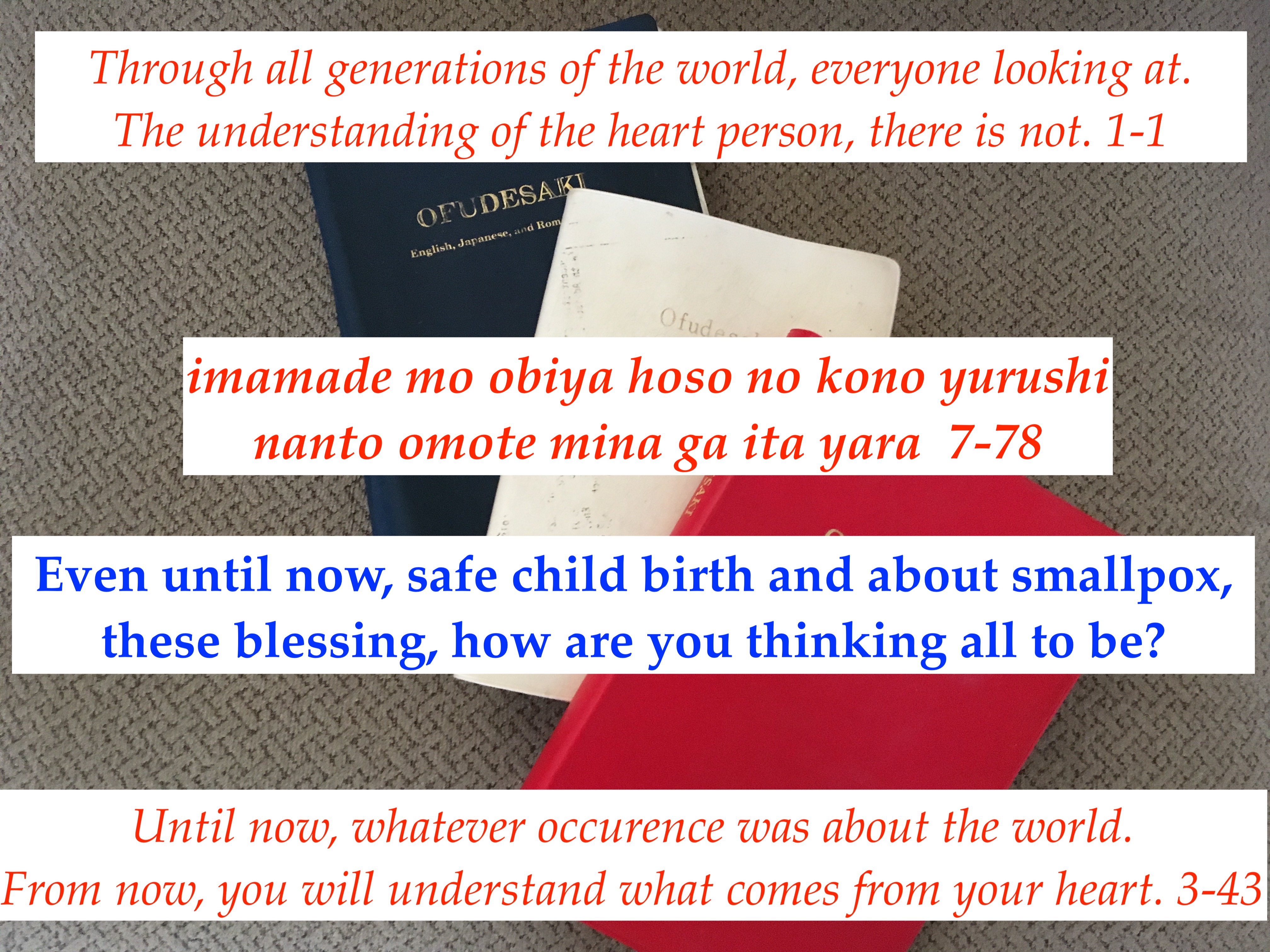 The grant of safe child birth granted by Oyasama, was one of the factors that brought people into the religion. Again, all these blessings are dependent on a pure mind. God is just showing people what are own hearts normally do for us each day. If we attain a pure mind, only joy will flow from our hearts.
