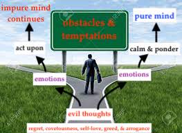 - Acknowledge that obstacles and temptations occur in our lives. These are like angry coworkers, angry spouse, oppositions, alcohol, seductive pictures, material wealth, casinos, etc.