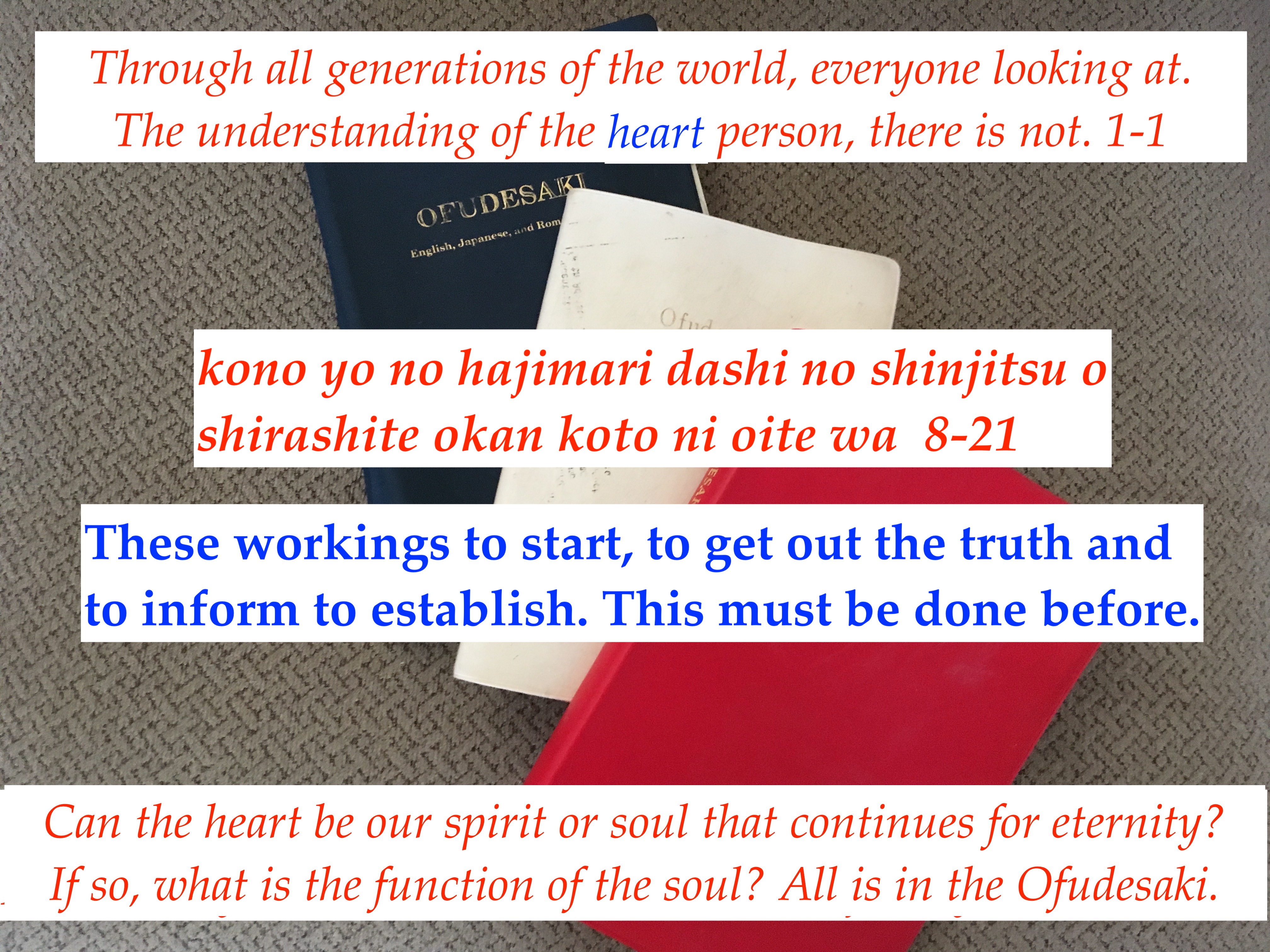 These workings are illness as guidance from God. But before these blessing are given, one must spread the truth of God to the people you want to save. One must tell people what God will do to save them. Unless one tells them, they may not understand God’s guidance.