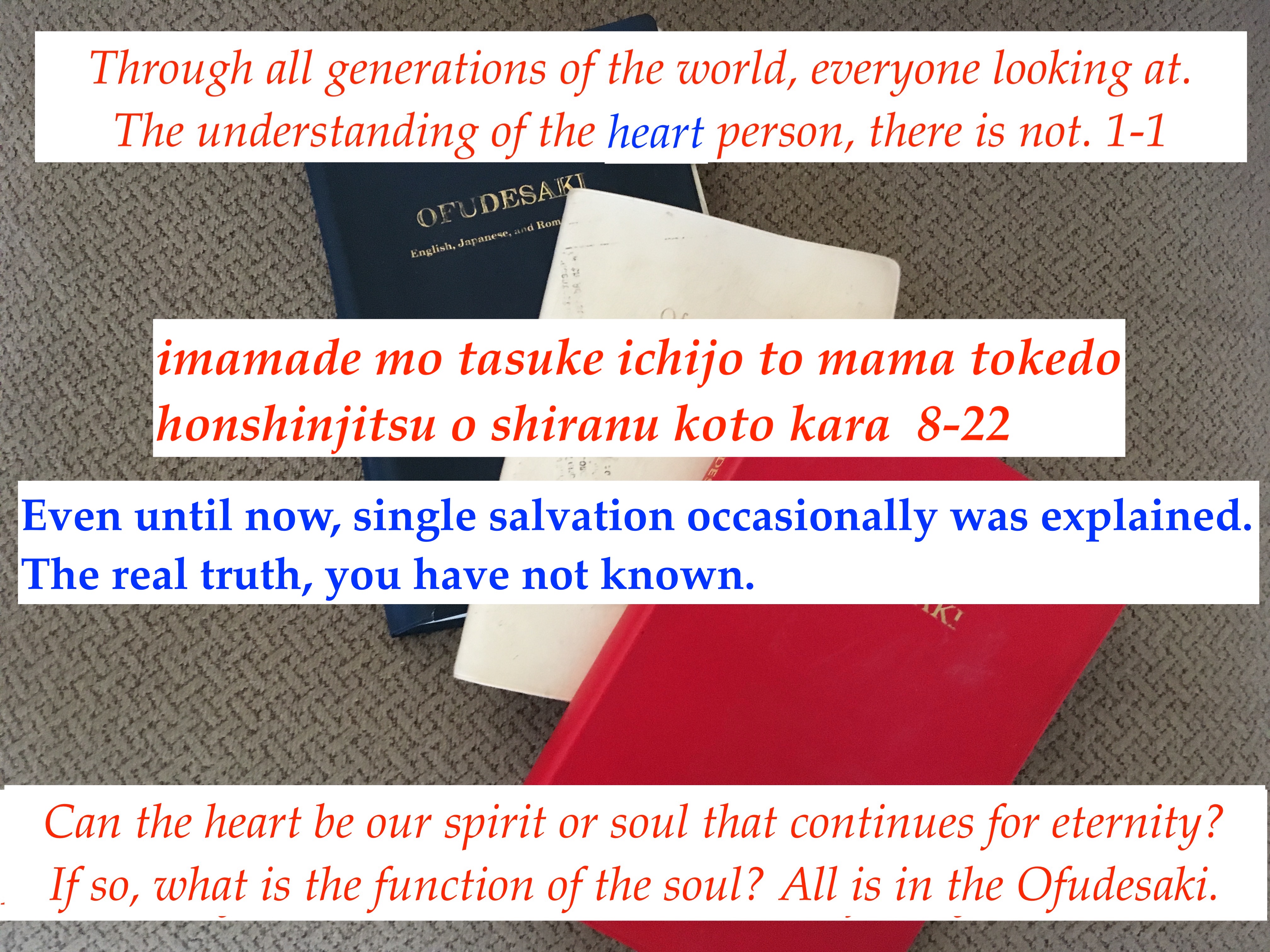 The real truth is that God will begin to help save the world. God’s workings to save the world will be explained. These explanations are all written in the Ofudesaki.