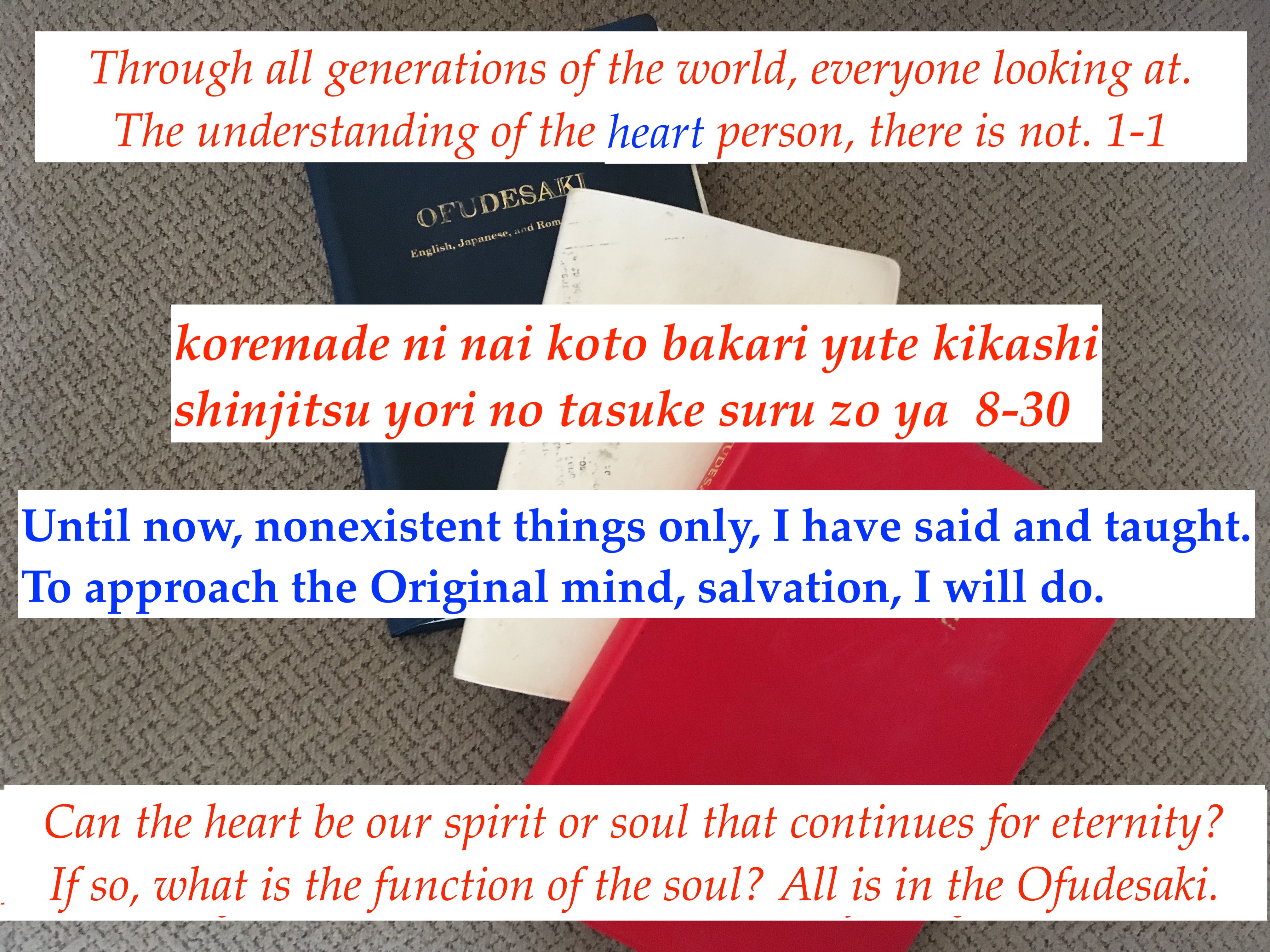 God is telling us, to obtain the pure mind from all of us. God will begin to work to do this. This is all explained in the Ofudesaki!