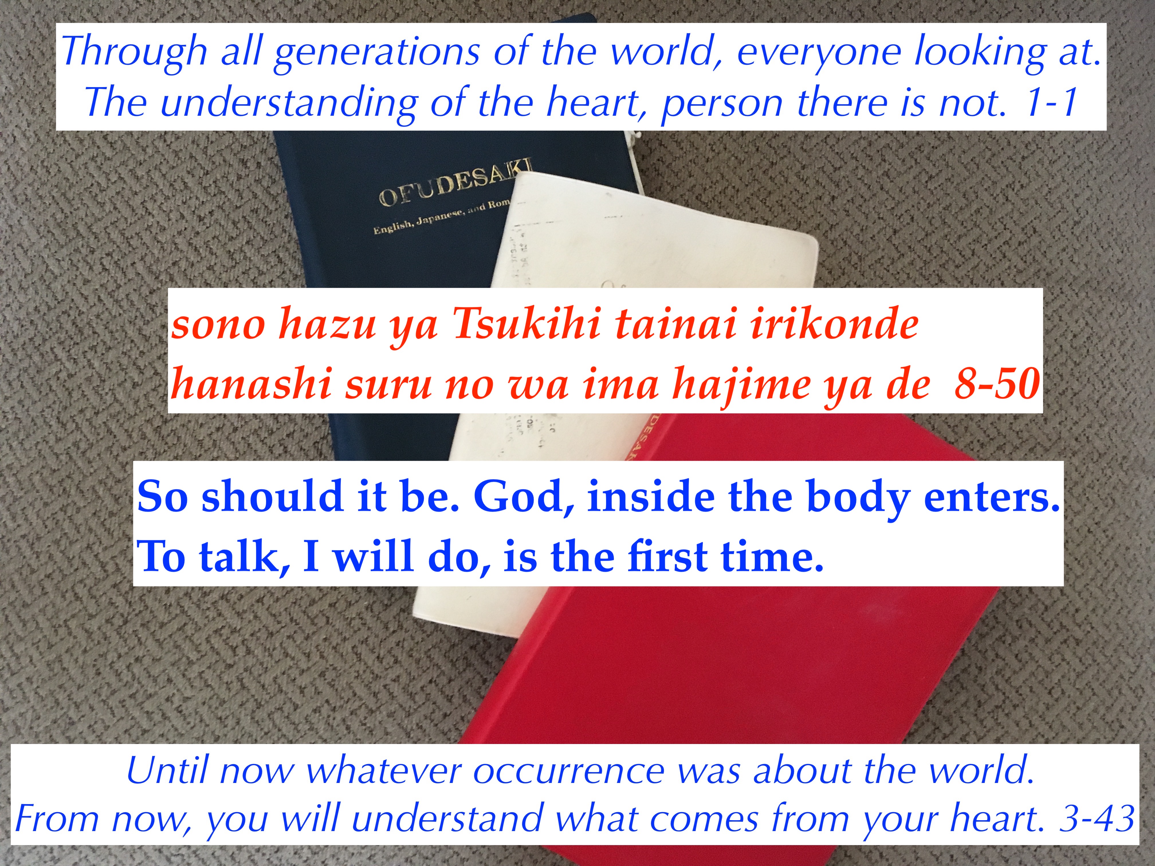 God enters the body of Oyasama, and begins to speak about the teachings.