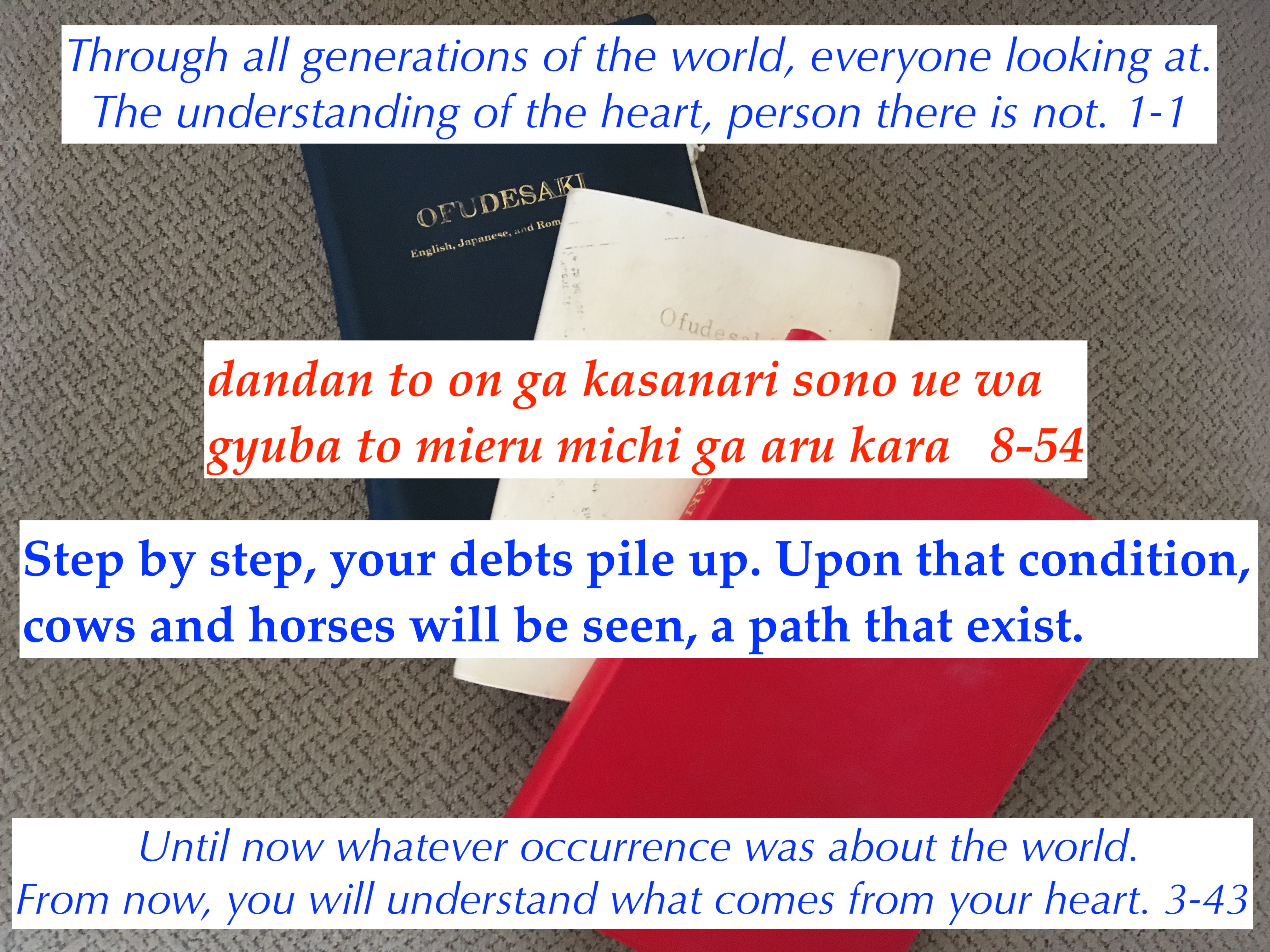 If your debts or fates builds up, there is a possibility that one may come back in the next lifetime as a cow or horse. Remember, it is our hearts that collects our demerits from our evil actions, and releases them as fate. If our hearts have too much demerits, our fate in our next life may be as a lower species. In the Ofudesaki, the incarnation to cows is mentioned a few times.