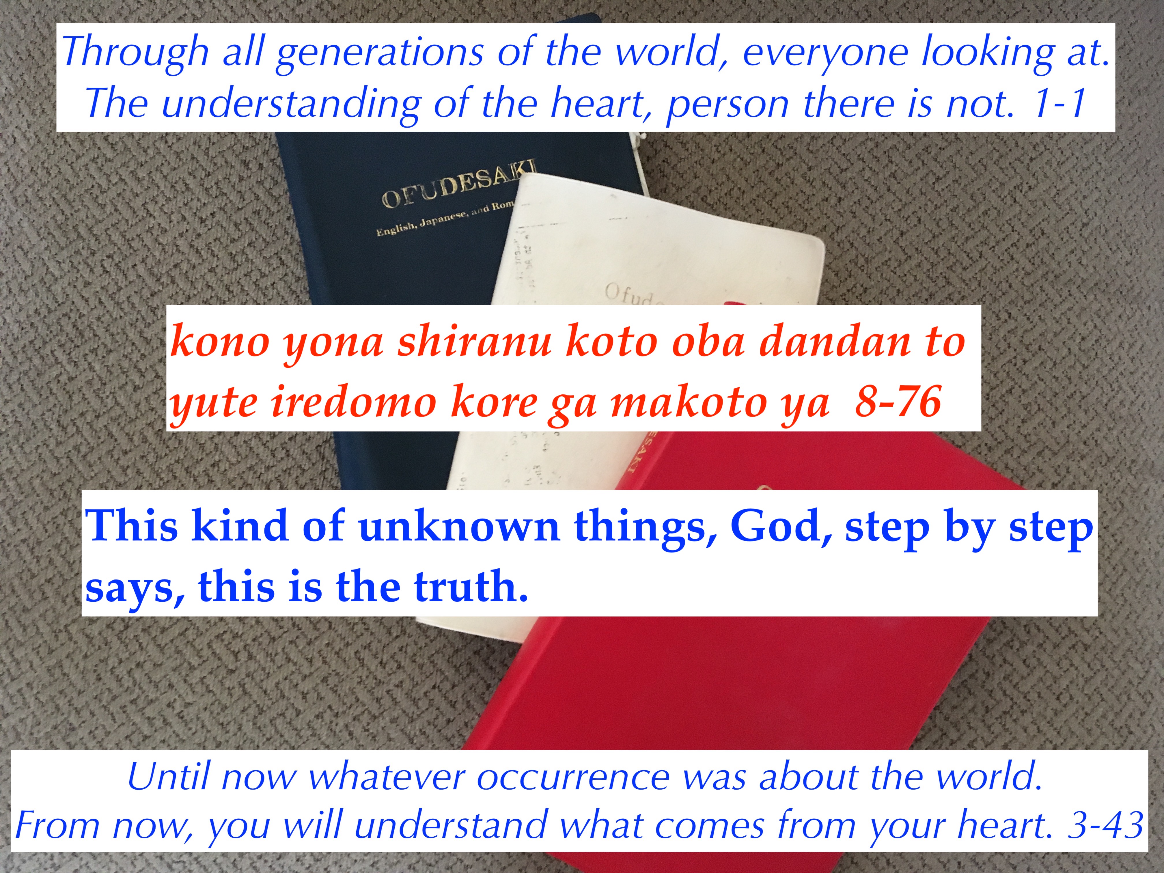This entry was posted in Scripture From Heaven, The origin of suffering is from the mind, Understanding the heart to understand why we suffer and tagged causality, God, heart, karma, Ofudesaki, reincarnation, soul. Bookmark the permalink.