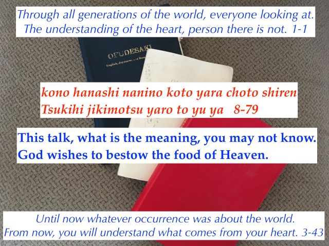 The word jikimotsu is transalated as food from heaven. It has also been called the heavenly dew. The jikimotsu is suppose to flow from heaven to a receptacle placed on top of the permanent Kanrodai, when everyone in the world is settled (pure mind or shinjitsu). The Jikimotsu will be given to Oyasama. It will be up to Oyasama, what she wants to do with it. I am not sure what this means. If anyone has any knowledge about what happens to the jikimotsu. Is it some type of elixir? Is it just a type of symbolism of the Joyous life to occur?