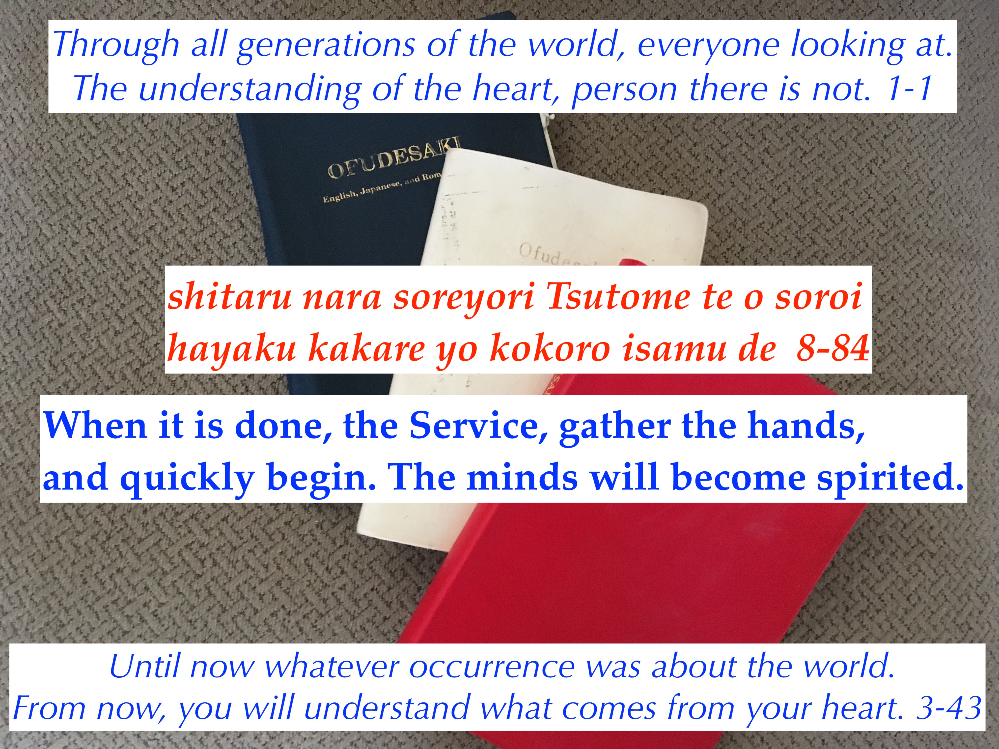 Now that the location of the Kanrodai had been located. God tells the early followers to begin the Joyous Service. The Kanrodai is the location we direct our prayer toward, since God had descended from heaven to this location. When God accepts our prayer, God will help save the world, helping people become spirited. TO BE SPIRITED, IS ALL WE WANT!