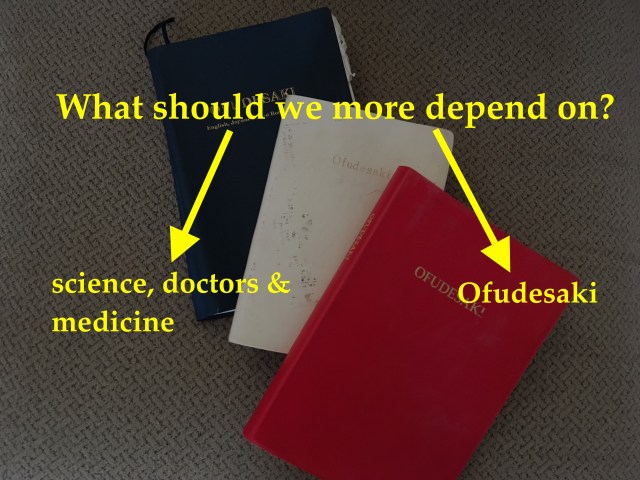 The one million dollar question is, should we depend more on doctors, science, and medicine to heal our bodies, or should we depend more on what God is telling us in the Ofudesaki, that illness comes from the mind?