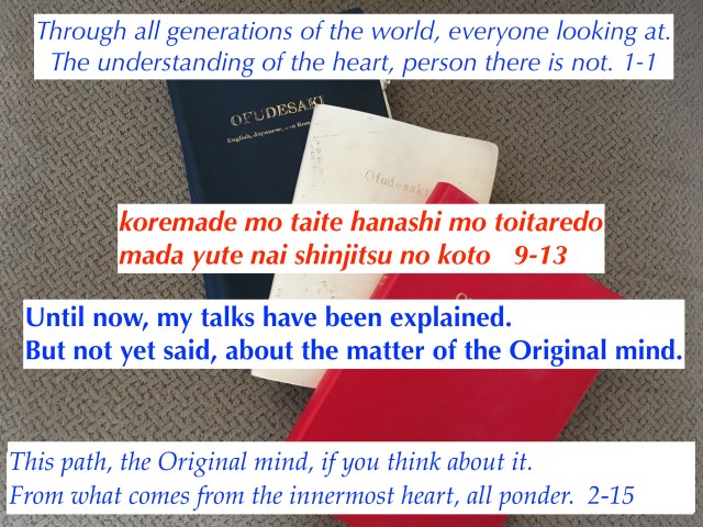 The Original mind is the pure mind of God. This is the mind without regret (oshii), covetousness (hoshii), self-love (kawaii), greed (yoku), and arrogance (koman). This mind was given to the first parents of human beings by God. This is the mind God wants us to understand and return to.