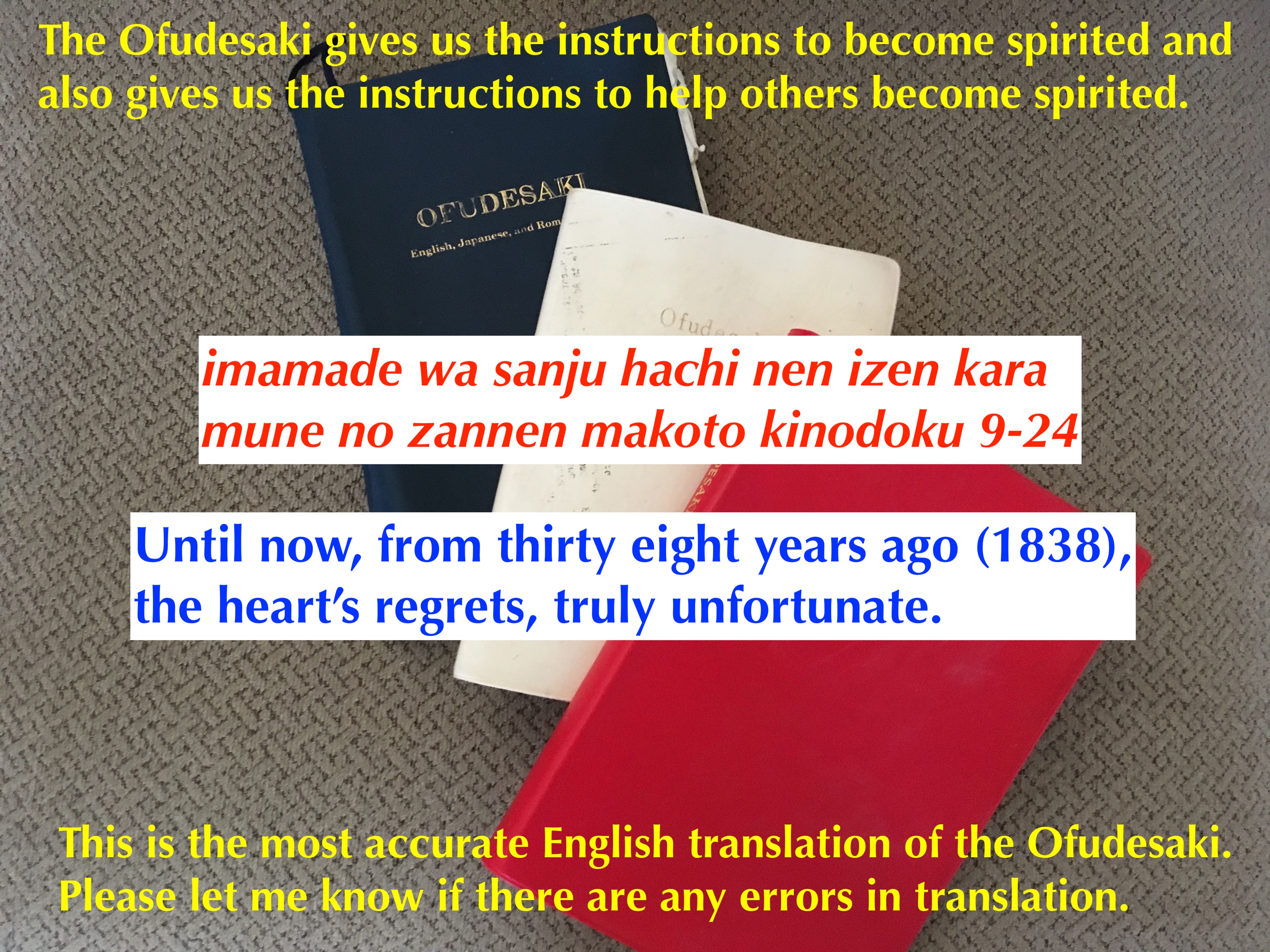 1838 was when God descended from Heaven to save the world. God saw the ominous fates in the hearts of human beings. God descended from heaven to help us purify our hearts, by purifying our minds, returning to the Original mind (shinjitsu), This is the pure mind given to the first parents of human beings. This is a mind, that will bring upon only joy from our hearts.