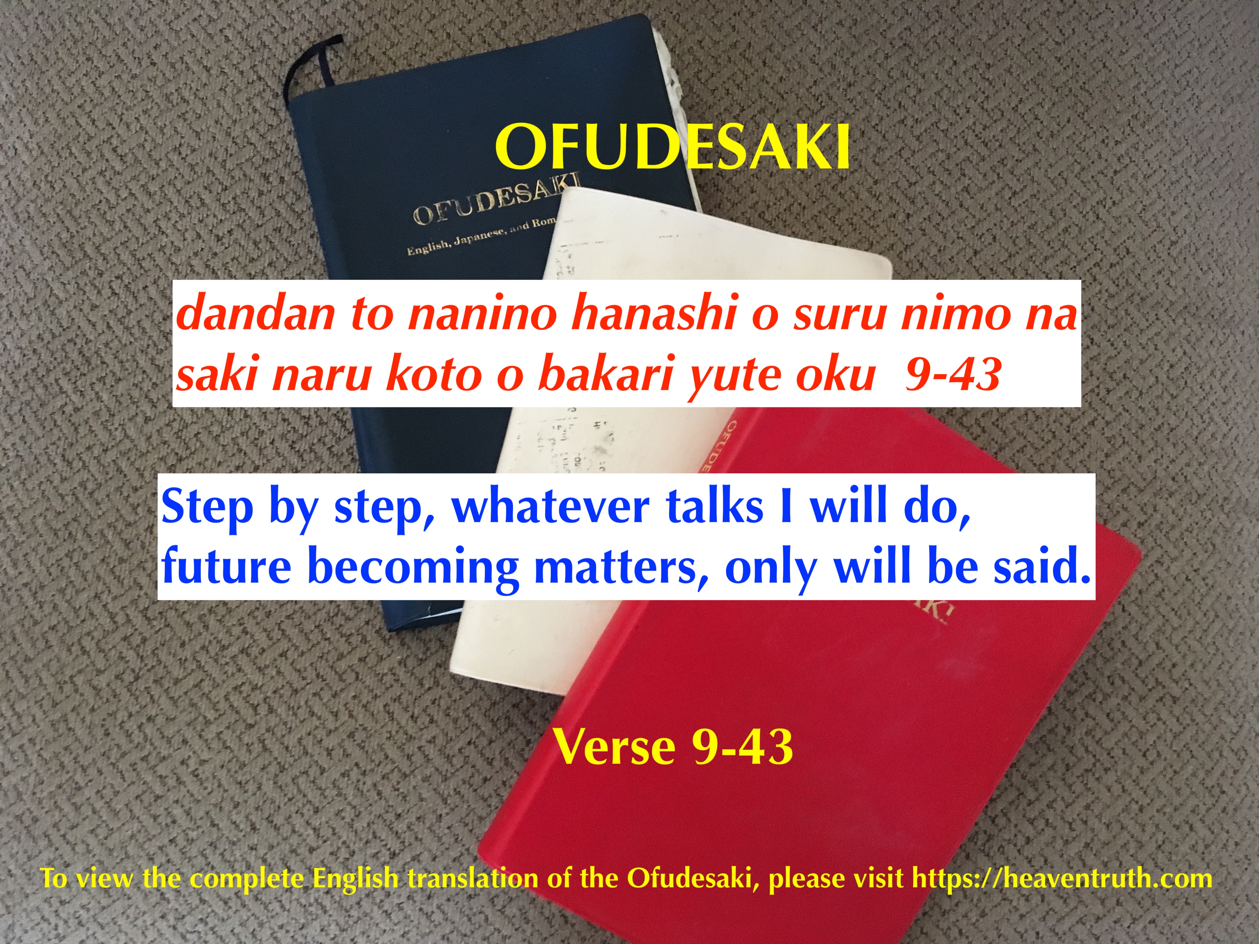 The Ofudesaki is a sacred scripture that tells of the future. God knows what is going to happen in the future. God is telling us that God will begin to help save the world. The future is promising, but how soon it appears depends on our understanding of God’s truths.