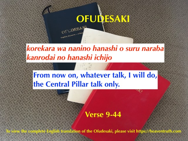 The Kanrodai or Central Pillar is important because it is the proof of the Origin of human beings. God created human beings from the existing creatures from the muddy ocean, and placed the pure mind of God into the first parents. Therefore human beings were meant to live the Joyous life. This is why God in the Ofudesaki wants us to understand the origin. The Kanrodai is the proof of the origin of human beings.
