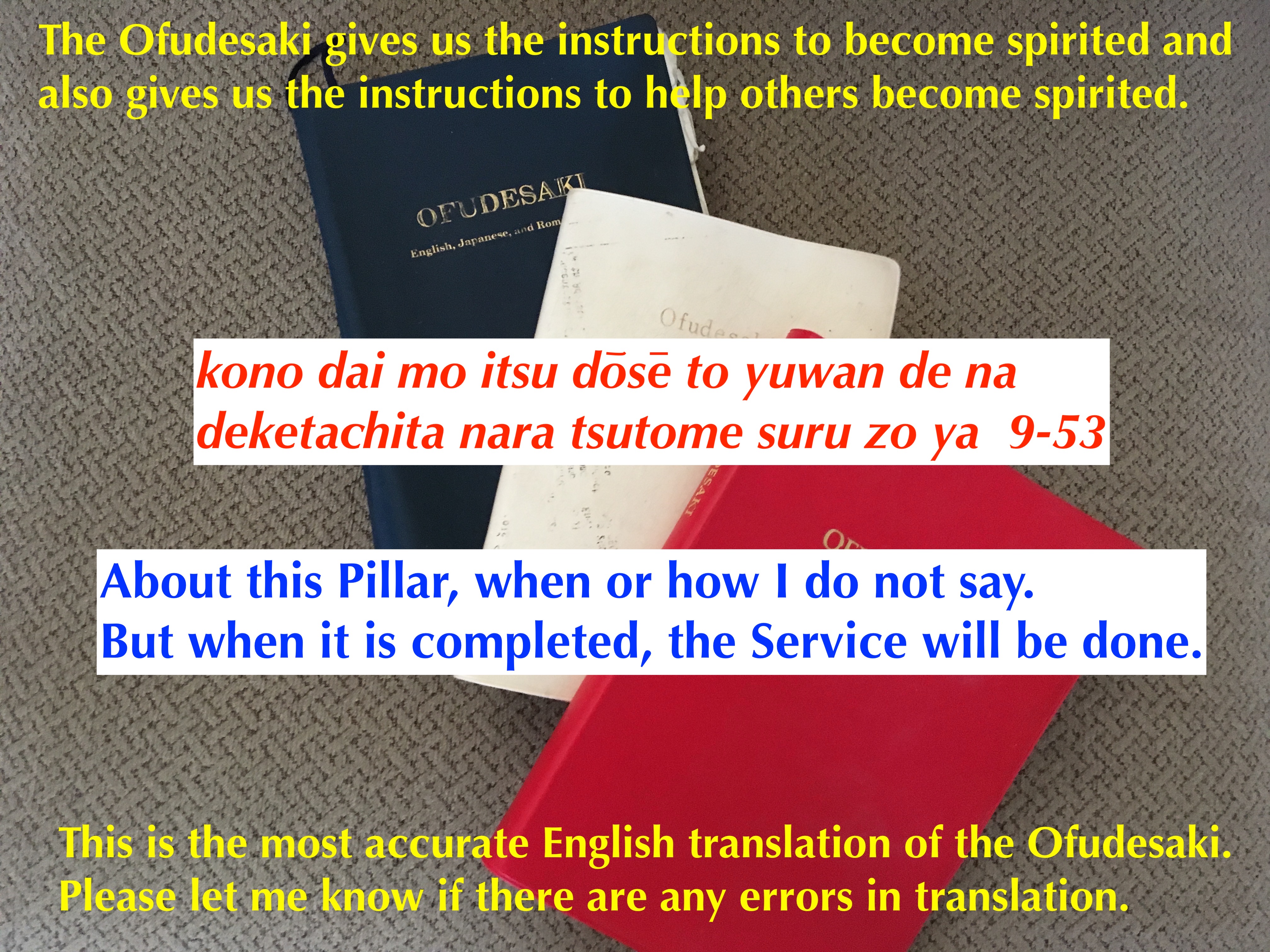 When the Pillar is finally constructed, the original instruments at creation, will perform the Joyous Service. Upon the performance of the Service, heavenly dew will flow upon a receptacle placed on top of the Central Pillar (kanrodai). This event will bring upon the Joyous life for the world.