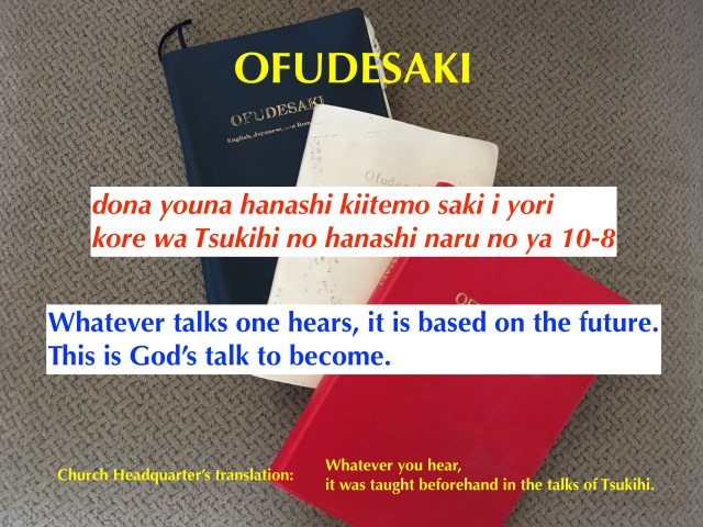 The words written in the Ofudesaki is about what God will do in the future to save the world. The ingredients to save oneself, and to share God’s truth, is all in the Ofudesaki.