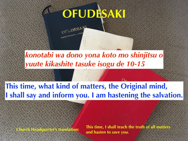 The Original mind is the most important concept of the teaching. This mind represents the Original pure mind of God that was given to the first parents of human beings. This Original mind represents heaven, as told in the 2nd part of the Joyous Service. “These workings, earth and heaven representing, wife/husband created and brought forth.” Earth is represented by some of the existing sea creatures in the muddy ancient ocean that was selected by God. God wants us to return the mind to the mind that was given to the first parents. This is a mind without regret, covetousness, self-love, greed, and arrogance. This mind will only bring upon joy by our hearts.