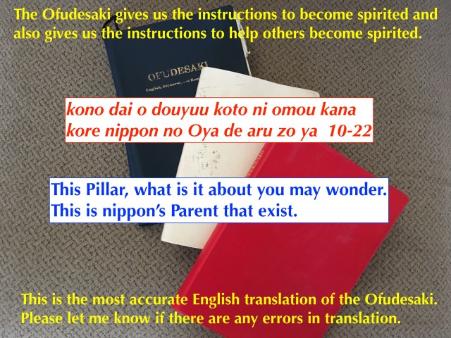 Nihon’s parent refers to Oyasama. Nihon refers to a location where the minds are pure. The location of the Pillar is where the first parent (Oyasama) was first created by God. God was telling the early followers that the parent of human beings was living at that time. With Oyasama’s physical demise, her soul returned to the location of the Central Pillar. It is my interpretation that God compares our mind with the pure mind of Oyasama when we pray. This is why when the location of the Origin was first initiated, Oyasama’s physical body stopped at the same location where human beings were created.The others who proceeded to walk also stopped at this location because their minds were pure.