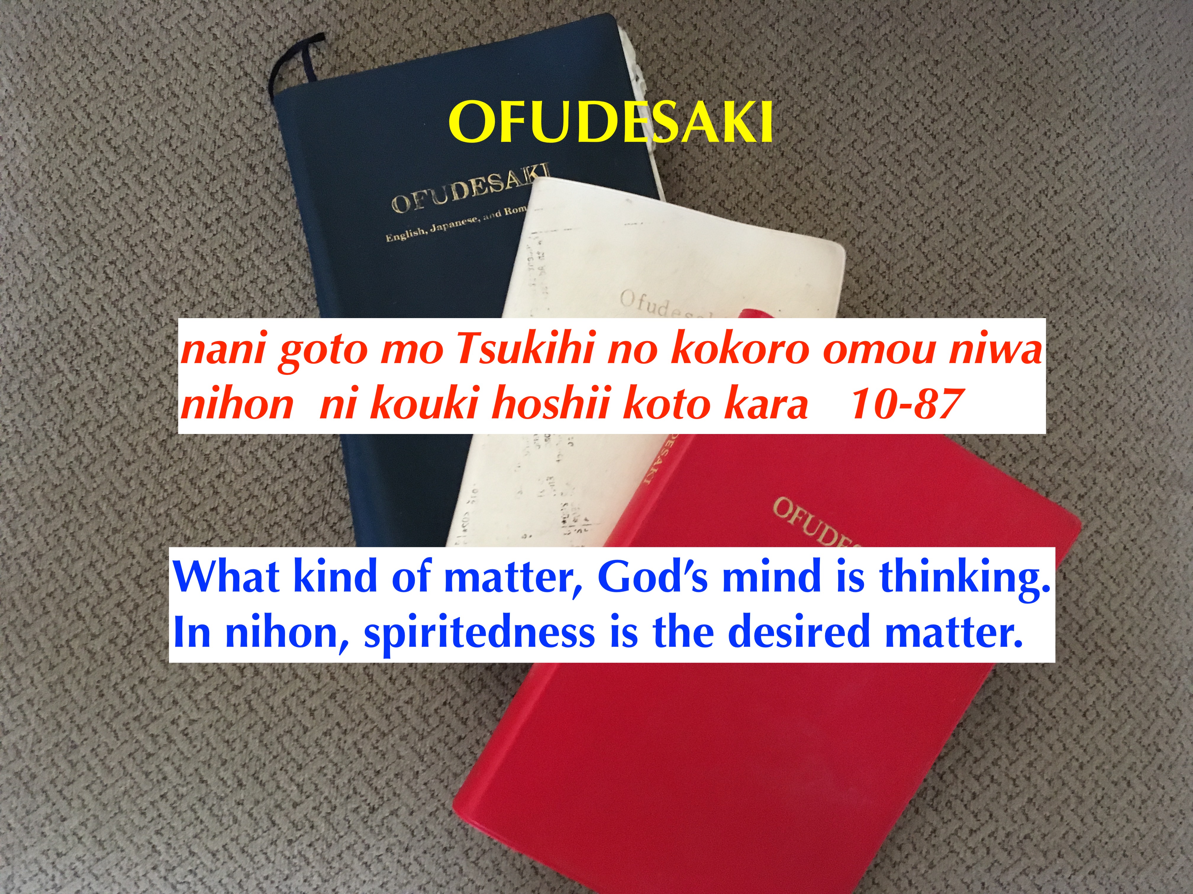 The Japanese word kouki is translated as rise, aroused energy, an high-spirited action. But in the original church translation, it is translated as divine record, which is the word koki.