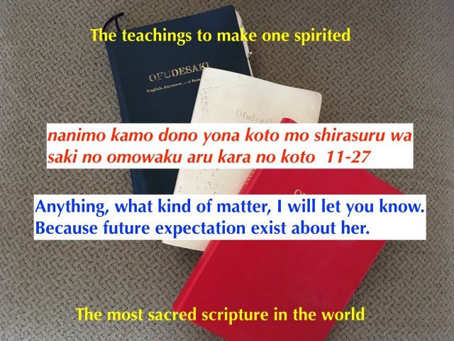 God is talking about Kokan, Oyasama’s daughter. She was one of the instruments used in the creation of human beings. God has future expectation from her, in the saving of the world.