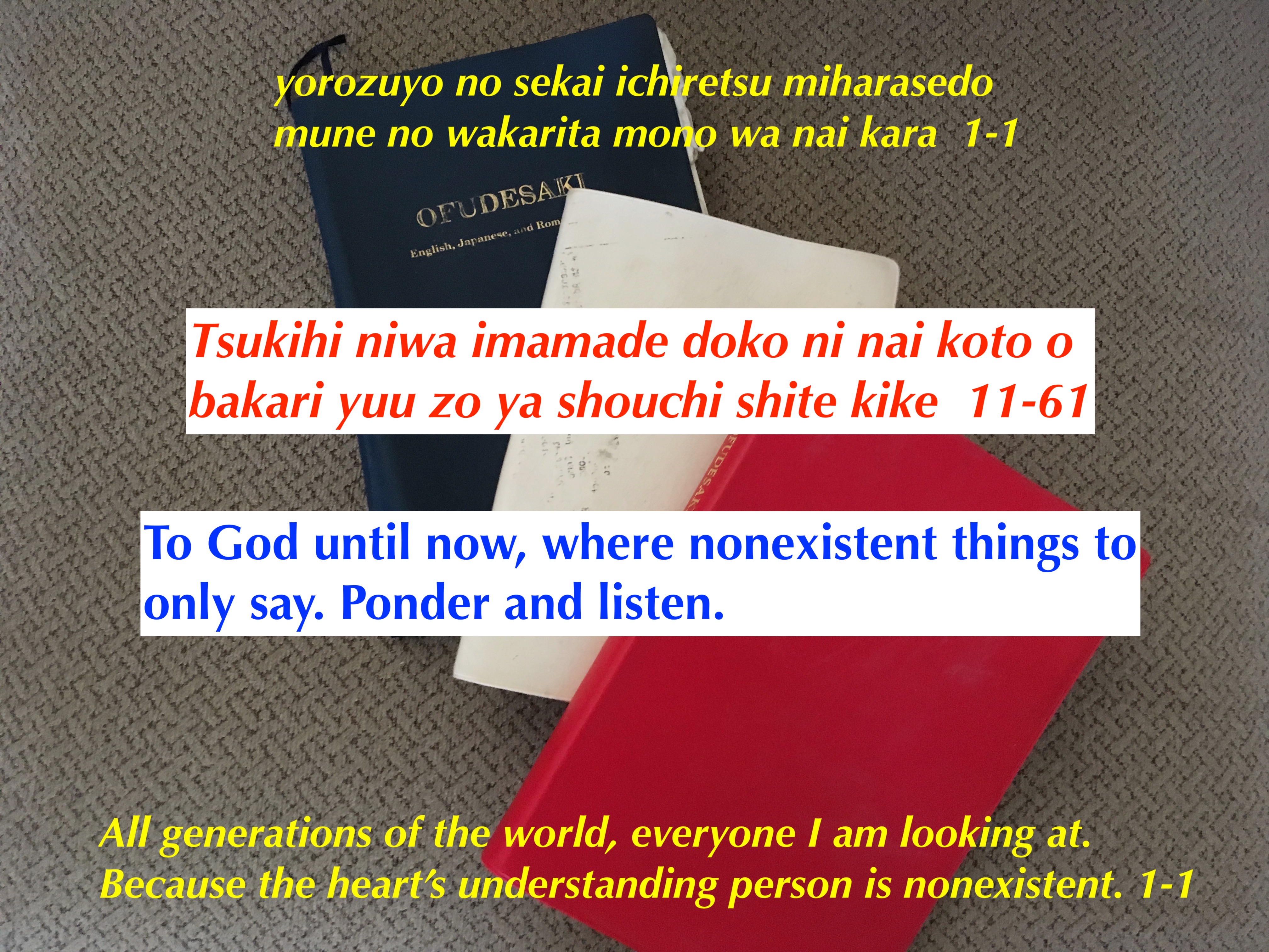 In the Ofudesaki, God tells us what will happen in the future. The Best part is that God tells us that the future is delightful. But when this joy comes, it all depends on our own minds.