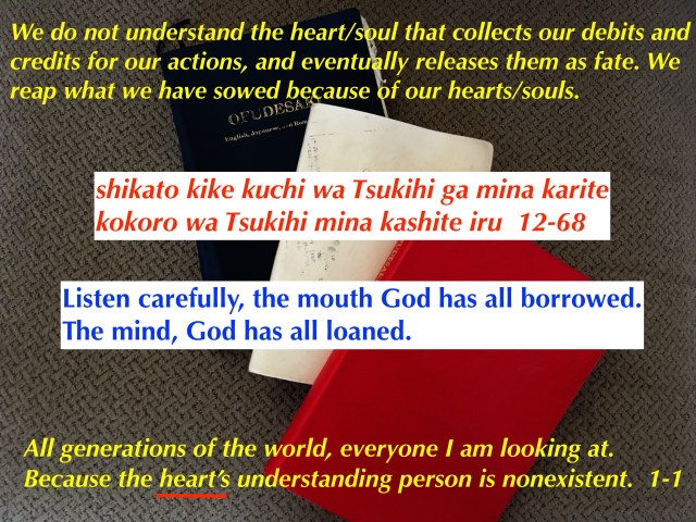 God speaks through Oyasama’s mouth. God is loaning God’s mind to Oyasama.