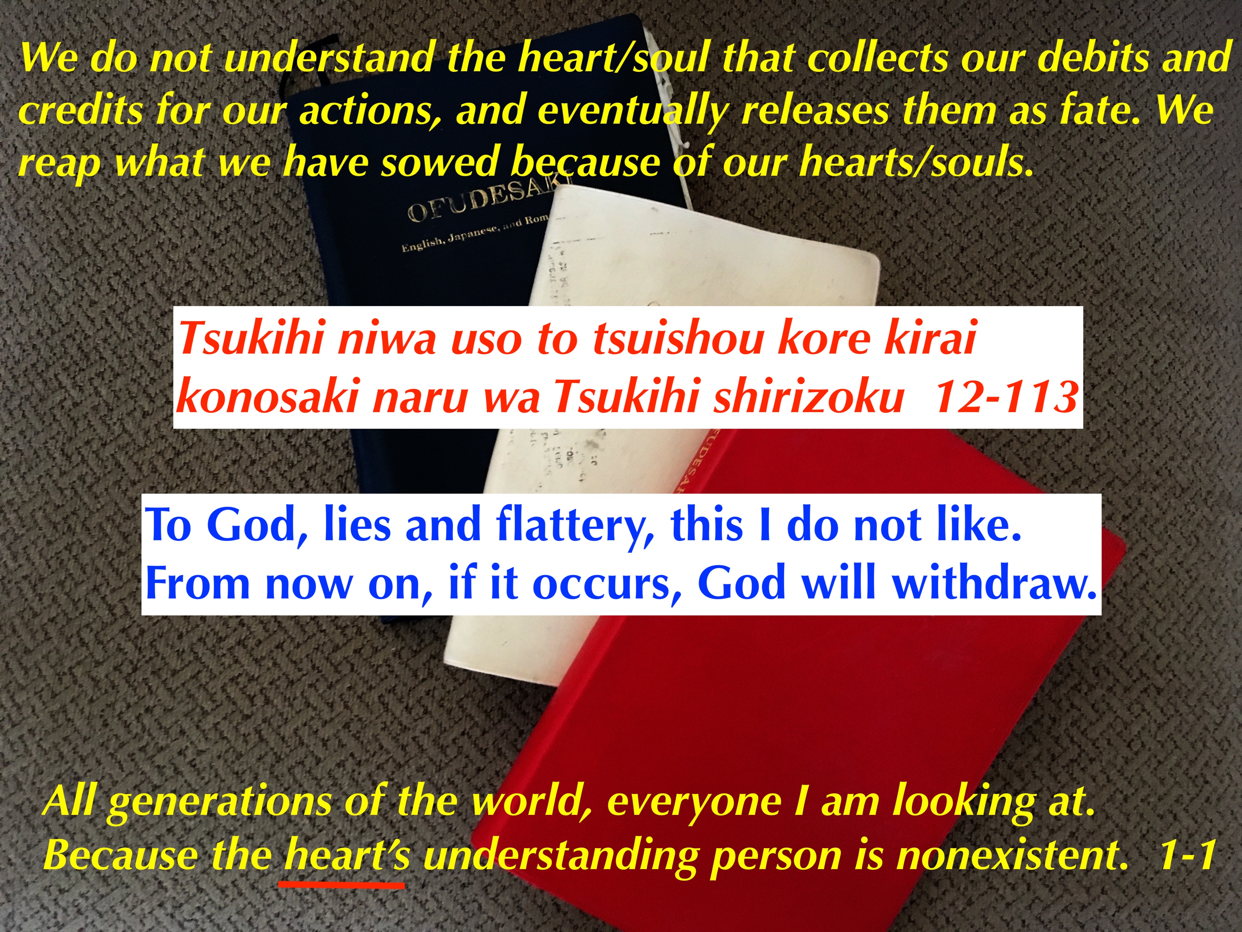 The word shirizoku or withdraw is controversial. There are other verses that says God will withdraw fire and water. Withdrawing water and fire is the same as placing illness. God is telling us that if we lie or have dusts in our minds, God may place illness on our bodies.