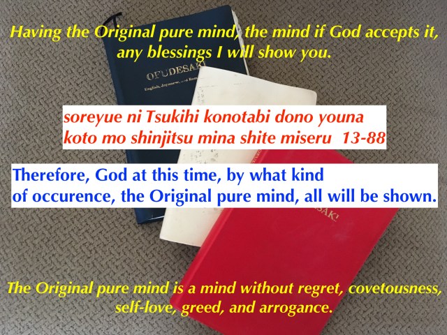 God wants us to understand the Original pure mind. This is a mind without regret, covetousness, self-love, greed, and arrogance. This is a mind that will only bring forth joy from our hearts/souls.
