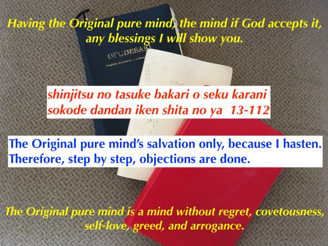 Attaining the Original pure mind is the most important message in the Ofudesaki. Without this, our religion is like any other religion.