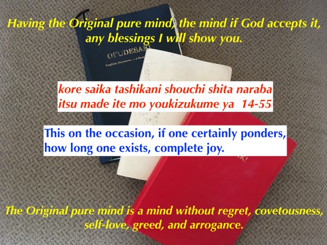 One must ponder the Original pure mind (shinjitsu). This to attain is most important to health and happiness.