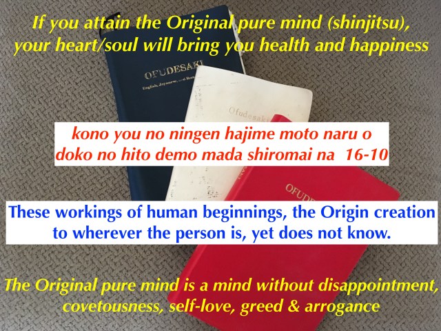 The Origin creation of human beings is important to understand because the Original pure mind from God was given to the first couple (Izanagi and Izanami) that started human beings. This is the mind that will bring upon only health and happiness.