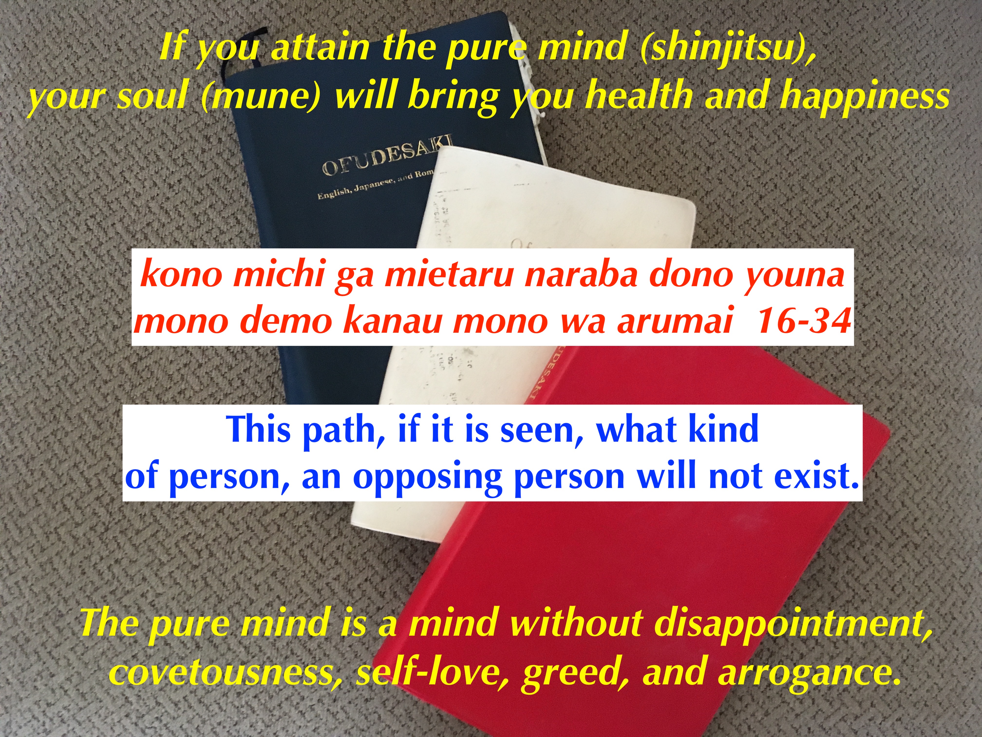 純粋な心を得るためのこの道は、もし実現すれば、自分自身の魂から喜びだけがもたらされる。恐れや反対は起こらないはずだ。