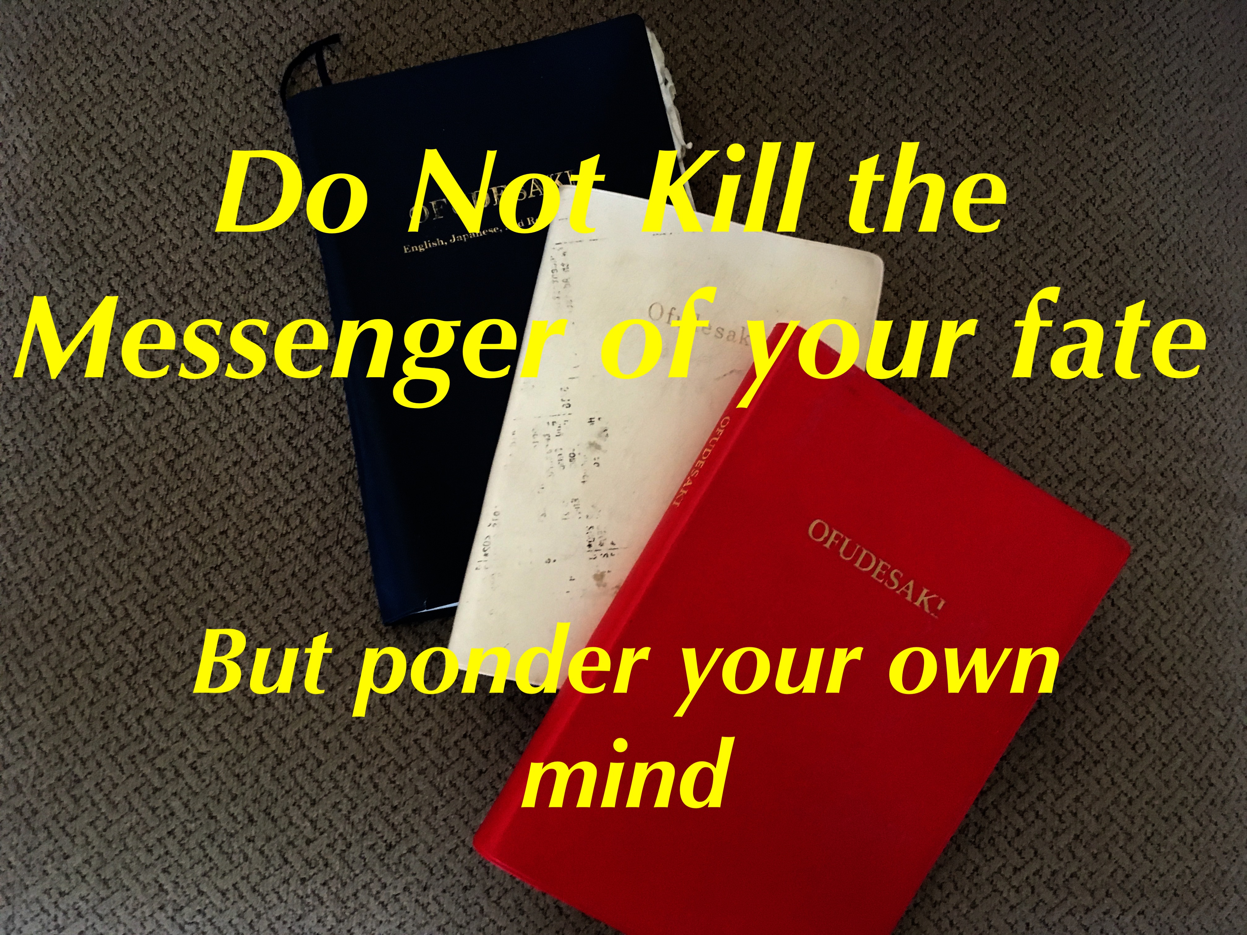 Deus nos diz que, se conseguirmos remover nossos maus pensamentos, poderemos alcançar a saúde e a felicidade. Somente a alegria virá de nossas almas. Os pensamentos negativos são decepção (oshii), cobiça (hoshii), amor-próprio (kawaii), ganância (yoku) e arrogância (kouman)