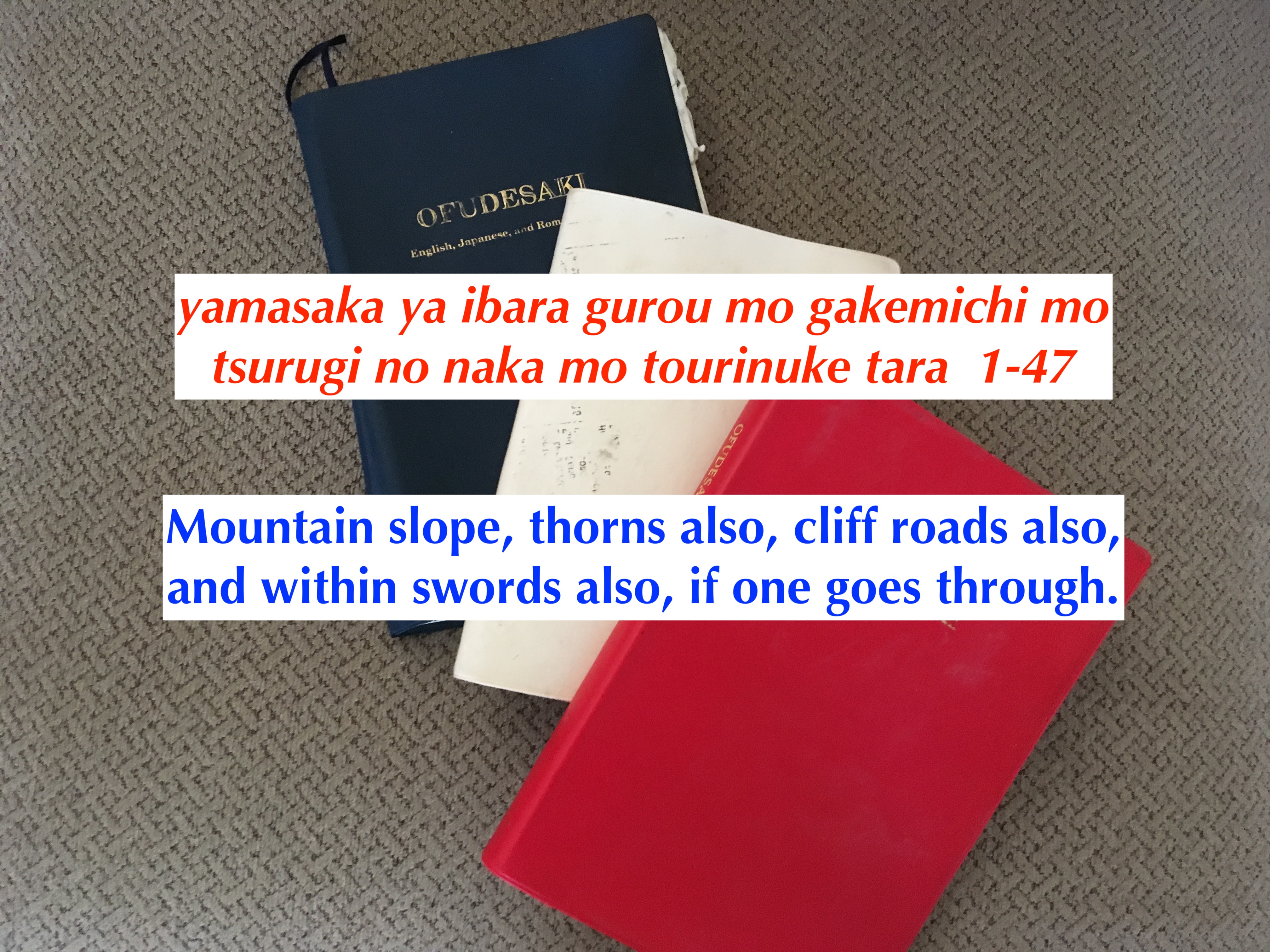 これは魂の道であり、私たちのネガティブな運命が目の前に現れる場所である。苦しみが起きたときに神や他人を責めなければ、やがて自分の kokoro (mind) を浄化することができる。kokoro (mind) が浄化されれば、魂からは喜びしか生まれない。