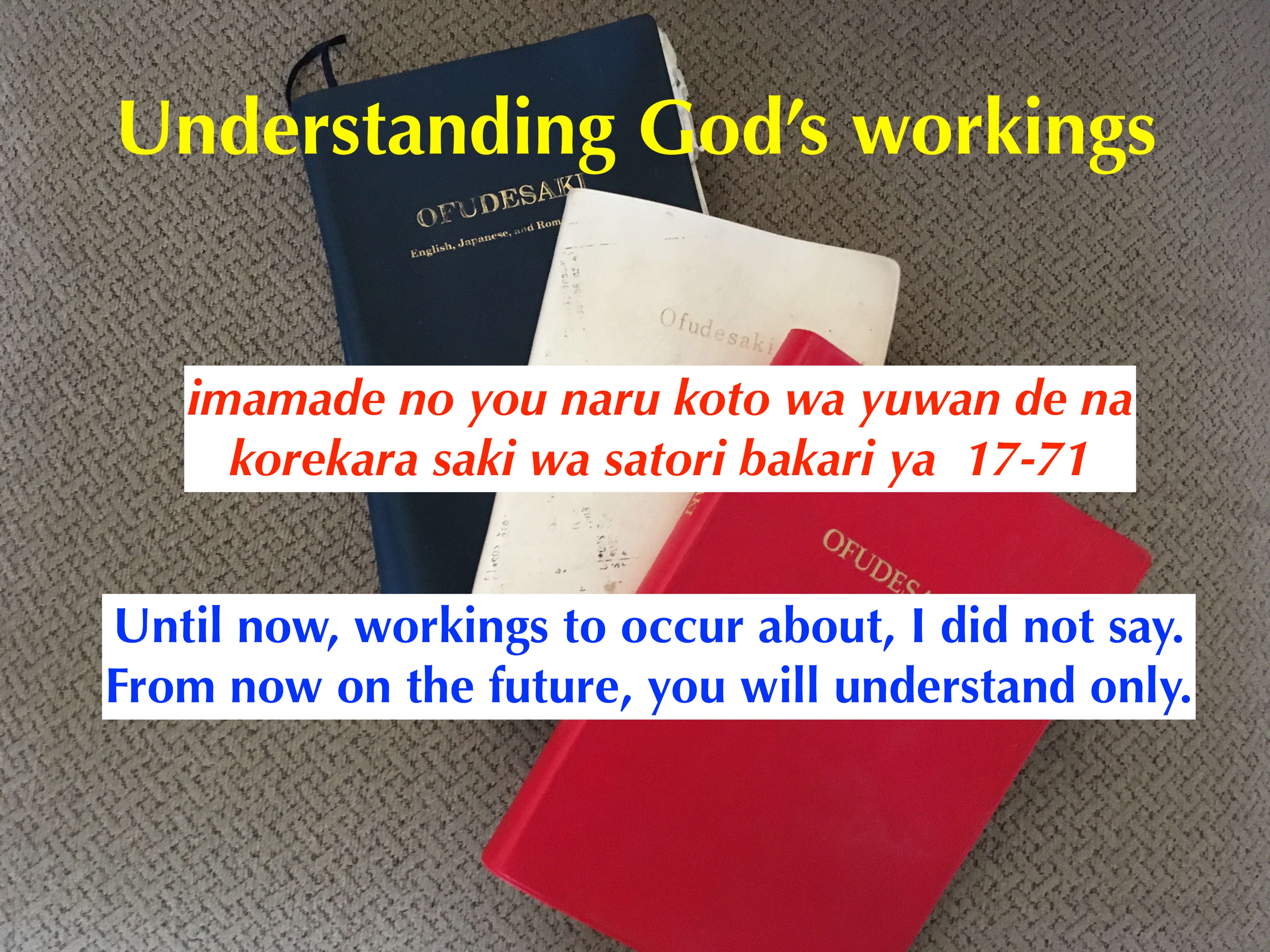 Understand the word yo(u). It is not yo (world). Yo(u) are juuyou, or God’s blessings of guidance. This makes a big difference in meaning of the verse. God’s guidance is very important in helping people understand their own soul, to purify the mind. Remember when the mind is pure, one is saved!!