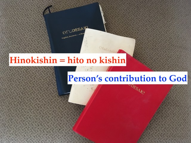 The word hinokishin is not in the Ofudesaki; but it is in the 12 Songs of the Mikagura-uta. Most church followers believe that hinokishin is the helping of other people, like in disaster relief, or the cleaning of parks and beaches. But according to how it is used in the Mikagura-uta, it appears to be the process of spreading God’s teachings to others.