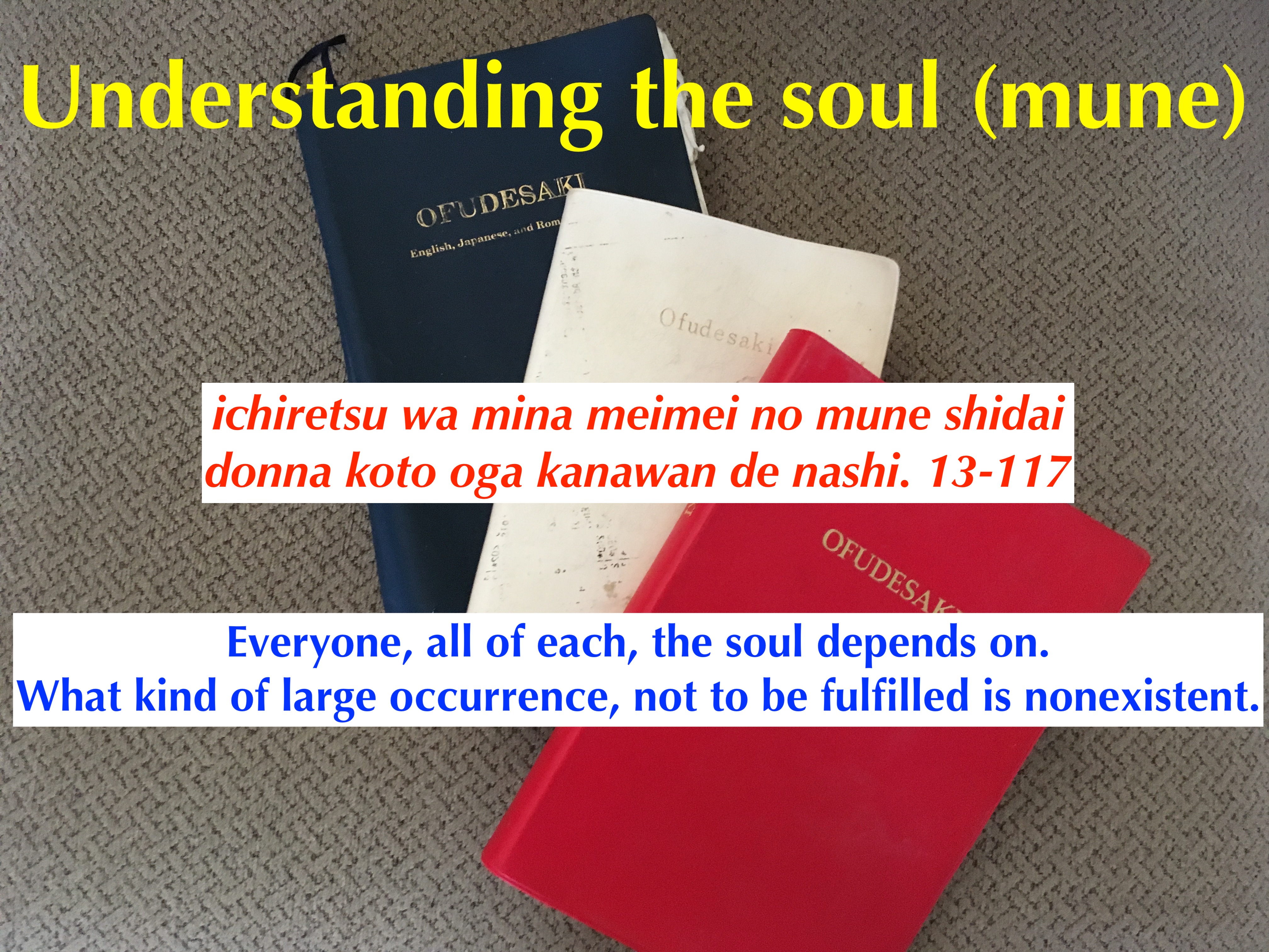 First, I believe we are not fully following the instructions in the Ofudesaki. One key reason is that we do not truly understand the soul.