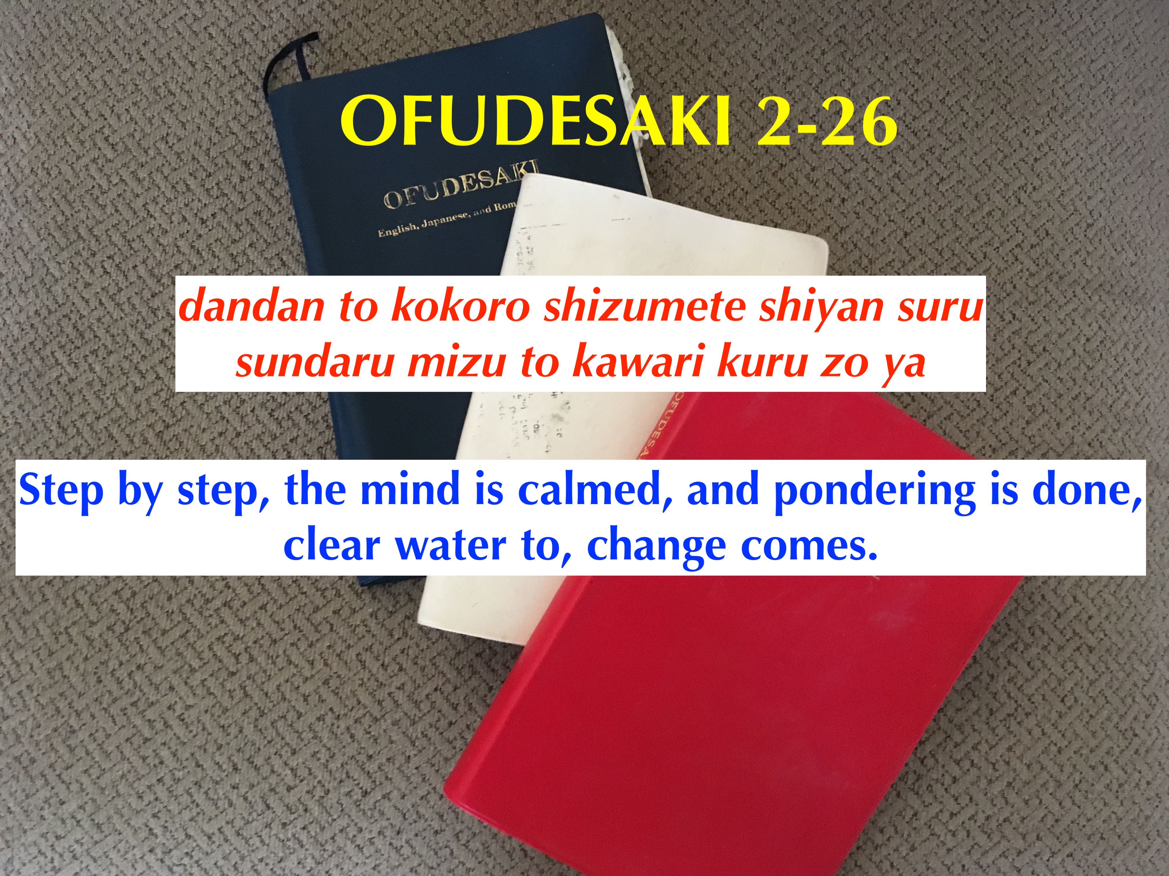 おふでさきを読むと、そのほとんどが、自分の魂を理解するためのガイダンスとして、神が病気をどのように置き始めるかについて書かれている。魂を理解すれば、自分のkokoro (mind)を清めることができる。kokoro (mind) が清らかであれば、魂からは健康と幸福だけがもたらされる。 この教えはなんとシンプルなのだろう!